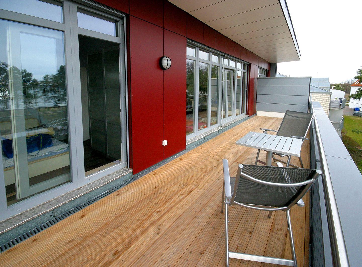 Entfliehen Sie dem Alltag im spektakulären Penthouse-Appartement „Meerundmehr“. Die lichtdurchflutete Ferienwohnung besticht durch eine 25 qm große Dachterrasse, die sich über die gesamte Front der Wohnung erstreckt und atemberaubende Ausblicke auf die Ostsee bietet. Gönnen Sie sich das Besondere und genießen Sie hier bei absoluter Ruhe das Meeresrauschen und entspannte Stunden unter freiem Himmel. In der voll ausgestatteten Küche fehlt es an nichts. Ein privater PKW-Stellplatz, ein Fahrstuhl und ein abgeschlossener Fahrradraum runden Ihr komfortables Urlaubserlebnis ab.