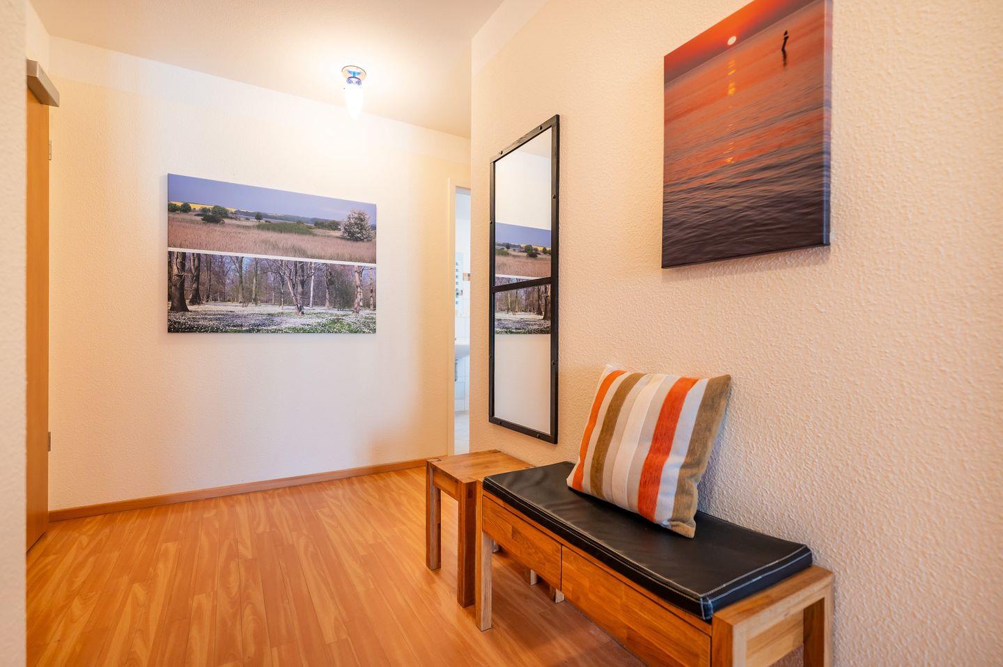 Erleben Sie einen erholsamen Urlaub im Appartement „Strandruh“, nur 80 Meter vom herrlichen Sandstrand der Schaabe entfernt. Vom überdachten, möblierten Balkon mit eigenem Strandkorb genießen Sie das sanfte Rauschen der Wellen und die klare Ostseeluft in vollen Zügen. Die voll ausgestattete Küche lädt zu entspannten Kochabenden ein, die bei einem Gläschen Wein fließend in den gemütlichen Wohnbereich übergehen können. Ein eigener PKW-Stellplatz, ein abgeschlossener Fahrradraum und der Aufzug direkt im Gebäude sorgen für Komfort und Flexibilität bei Ihren Urlaubsaktivitäten.
