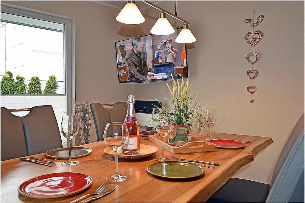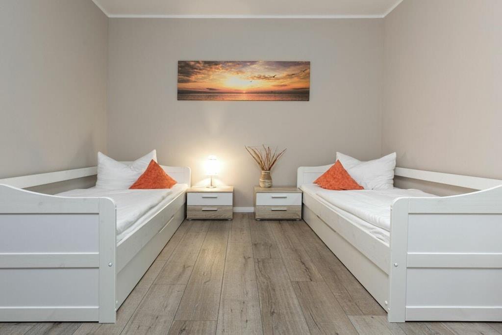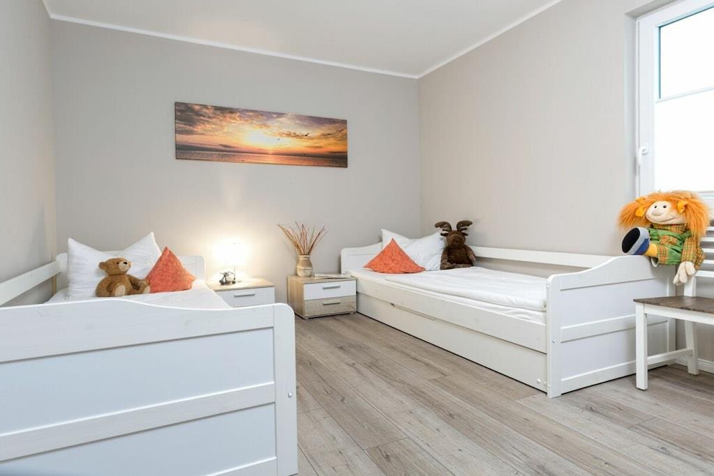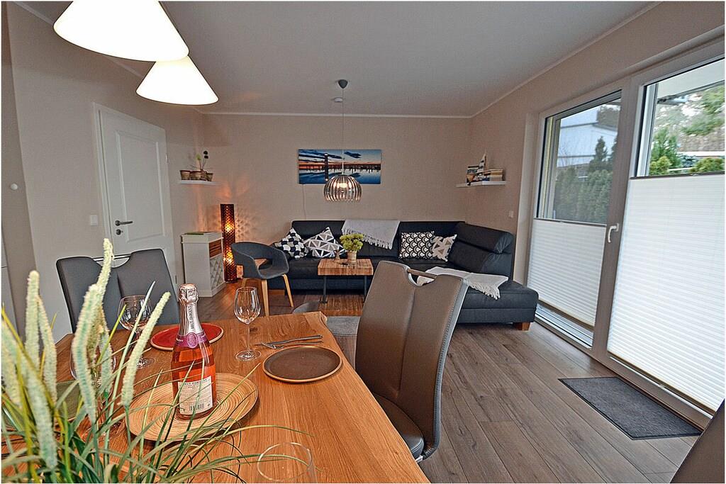 Parterre: großzügiger Wohn- Essbereich, gemütliche Couchlandschaft und ein Esstisch, Elektrokamin, TV/ Sat (Flatscreen), Radio/CD, Internet (WLAN), Bücher und Gesellschaftsspiele für gemütliche Abende, Fliegenschutzgitter im Wohnzimmer und in den Schlafräumen, offene komplett ausgestattete Einbauküche mit hochwertigen Geräten, 4- Plattenherd (Ceranfeld), Backofen, Kühlschrank mit kleinem Gefrierfach, Geschirrspüler, Kaffeeautomat und diverse Elektrogeräte, großes Bad mit moderner Dusche und WC, Föhn und Kosmetikspiegel vorhanden, 1. Schlafzimmer mit Boxspringbett (eine durchgehende Matratze 200×200), Kleiderschrank und TV/Sat (Flatscreen), 2. Schlafzimmer mit 2 Einzelbetten (90×200) und Kleiderschrank. Außenbereich: große Terrasse (20 m²), Lounge Gartenmöbeln und Sonnenschirm vorhanden, Grillmöglichkeit besteht (Gemeinschaftsgrill) Urlaub und Entspannung direkt am Ostseestrand Die Wohnung „Sonneninsel“ ist komfortabel und modern eingerichtet. An kühlen Tagen, sorgt der Kamin für gemütliche Stunden. Die voll ausgestattete Küche lässt keine Wünsche offen. Auf der großen Terrasse (Zugang vom Wohn- und Schlafzimmer) mit komfortablen Lounge Gartenmöbeln können Sie die Mittags- und Abendsonne genießen. Die Wohnung ist kinderfreundlich eingerichtet. Für die kleinen Gäste stehen ein Kinderhochstuhl und ein Kinderreisebett zur Verfügung. Alle Räume sind mit Fußbodenheizung ausgestattet. Die Ferienwohnung ist ein Nichtraucherquartier. Der eigene PKW-Stellplatz mit der Nr. 2 befindet sich direkt am Objekt. Weitere kostenpflichtige Stellplätze finden Sie in näherer Umgebung. Optimale Rad- und Wandermöglichkeiten runden das Angebot ab. Bei uns sind Haustiere willkommen (Gebühr Euro 5,-/pro Nacht).
