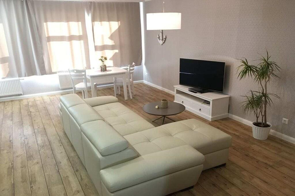 An der Ostsee, ca. 2 km vom Ostseebad Kühlungsborn entfernt, liegt das idyllische "Feriendorf Kägsdorf". Hier finden Sie unsere neue ebenerdige, hochwärtige, auf sterneniveau eingerichtete Ferienwohnung für bis zu 2 Personen, mit einem komb. Wohn/Schlafraum mit offener Küche, Duschbad, sowie eigener Terrasse mit Grill, großer Liegewiese, Spielplatz für unsere kleinen Gäste und hauseigenem kostenlosen Parkplatz. Inklusive WLan! Die Ostsee ist ca. 1000m Luftlinie von unserer Anlage entfernt. Durch die kleine Anzahl an Wohnungen, verglichen mit der Grundstücksgröße, den vielen dichten hohen Pflanzen und Büschen, fühlen Sie sich und Ihre anderen Mitgäste nicht beobachtet bzw. bedrängt. Hängematten und viele ruhige Plätze im gepflegte Garten laden zum Verweilen ein.