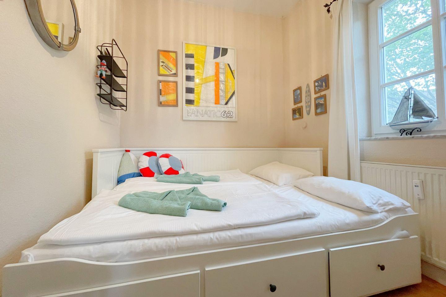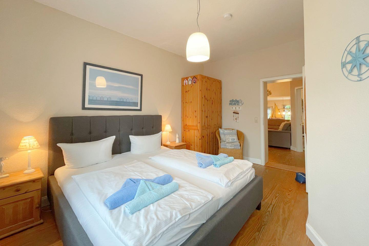 Zwei liebevoll gestaltete Schlafzimmer präsentieren sich als gemütliche Rückzugsorte nach einem erfüllten Tag. Das Badezimmer verfügt über eine Dusche, sodass Sie sich nach einem langen Strandtag erfrischen oder einfach die Seele baumeln lassen können. Damit Sie sich während Ihres Aufenthalts wie zuhause fühlen, sind Bettwäsche und Handtücher bereits in der Unterkunft vorhanden.