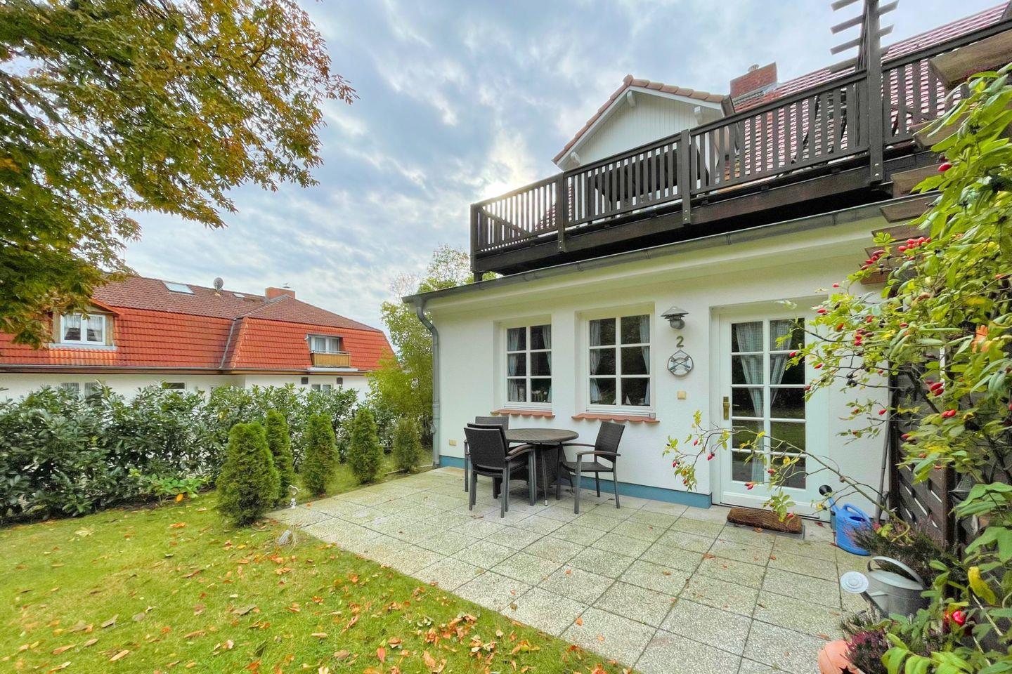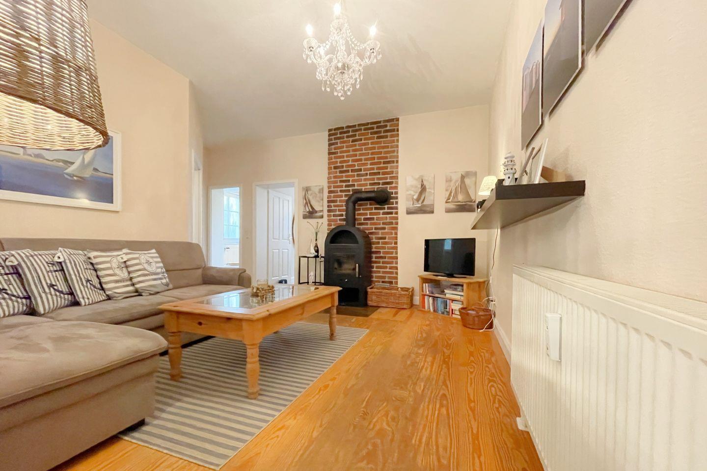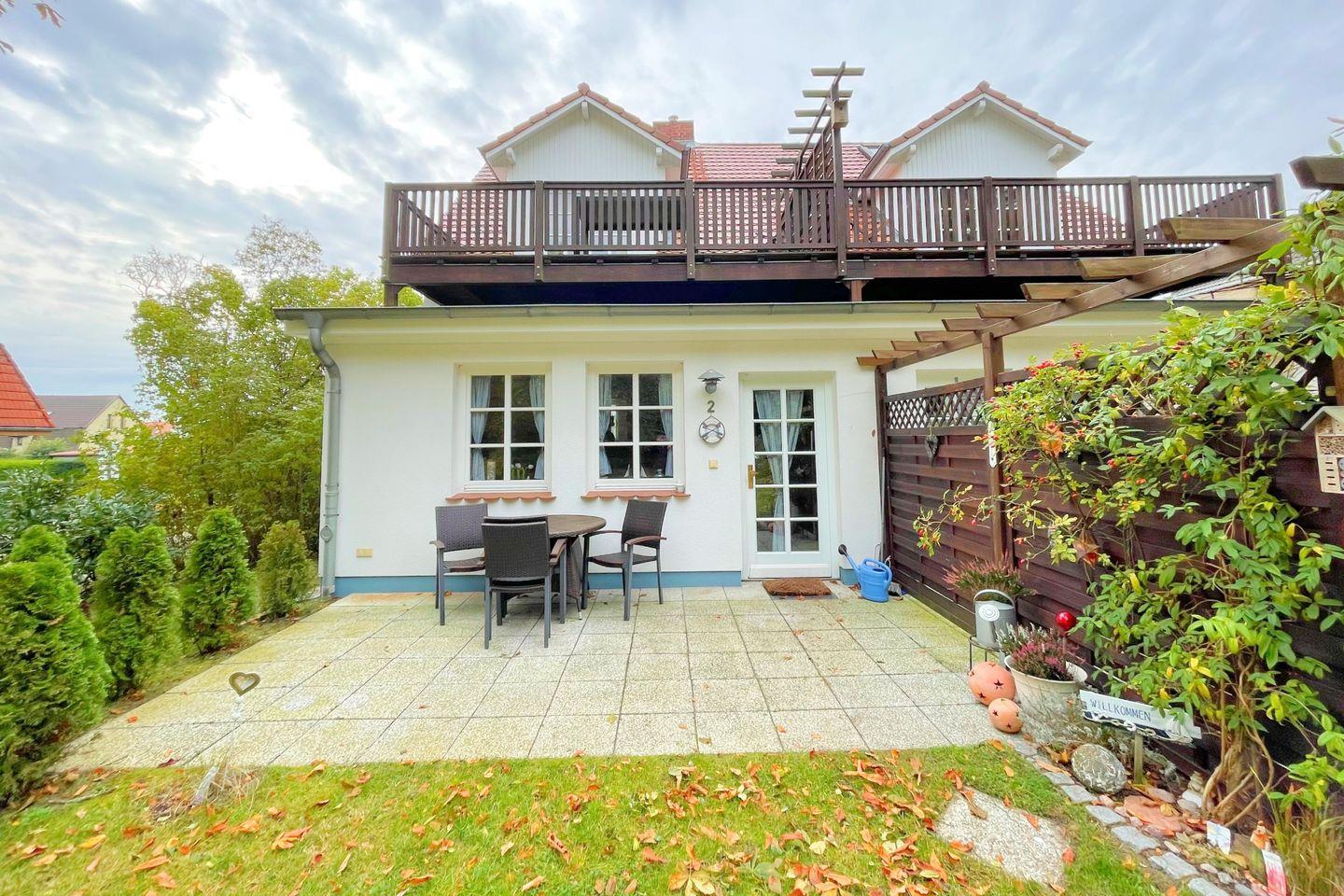 Charmante Ferienwohnung Blau-Weiss 2 in Kölpinsee, 500 m vom Strand, mit Terrasse, Kamin und WLAN für erholsame Ostsee-Tage.