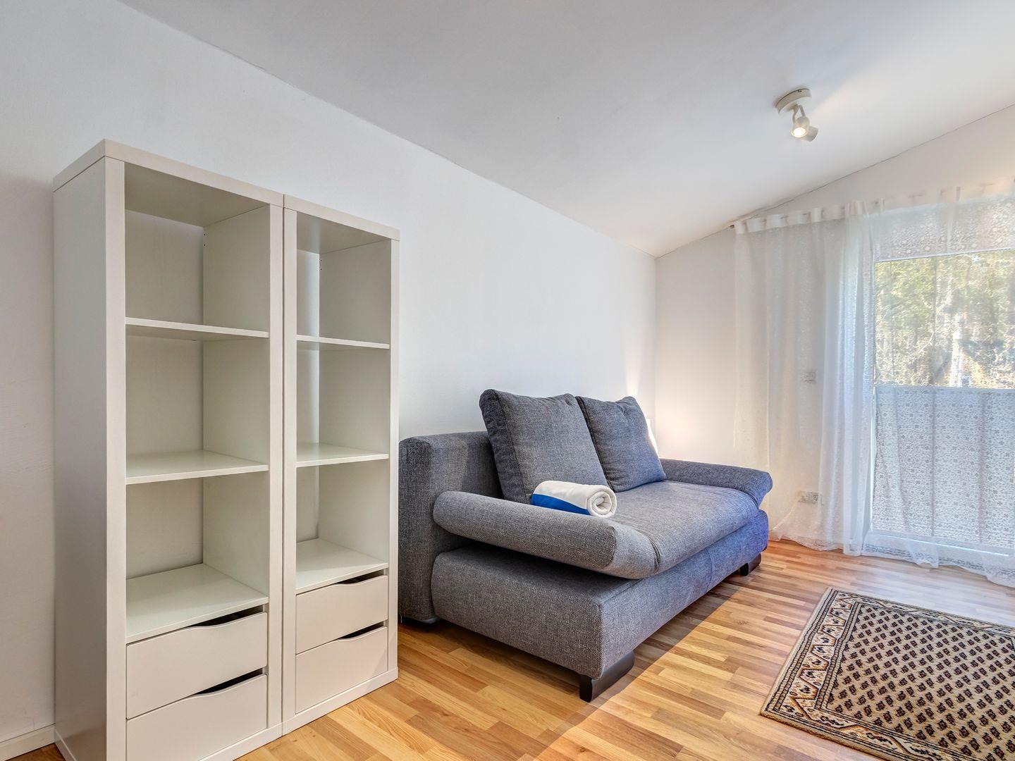 Das Obergeschoss bietet ein großzügiges Schlafzimmer mit einem gemütlichen Doppelbett sowie ein kleineres Zimmer mit einem praktischen Schlafsofa. Parkplatz befindet sich am Haus.