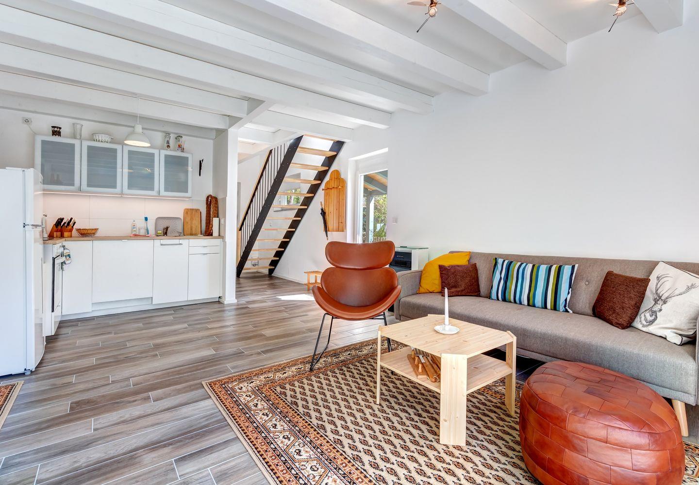 Unsere charmante Ferienwohnung ist ideal für bis zu 4 Gäste, die Ruhe und die Nähe zur Natur suchen. Trotz ihrer kompakten Größe wirkt sie durch die kleine Galerie im Obergeschoss angenehm großzügig. Genießen Sie bereits am Vormittag Ihr Frühstück auf der sonnigen Terrasse und lassen Sie den Tag entspannt beginnen.