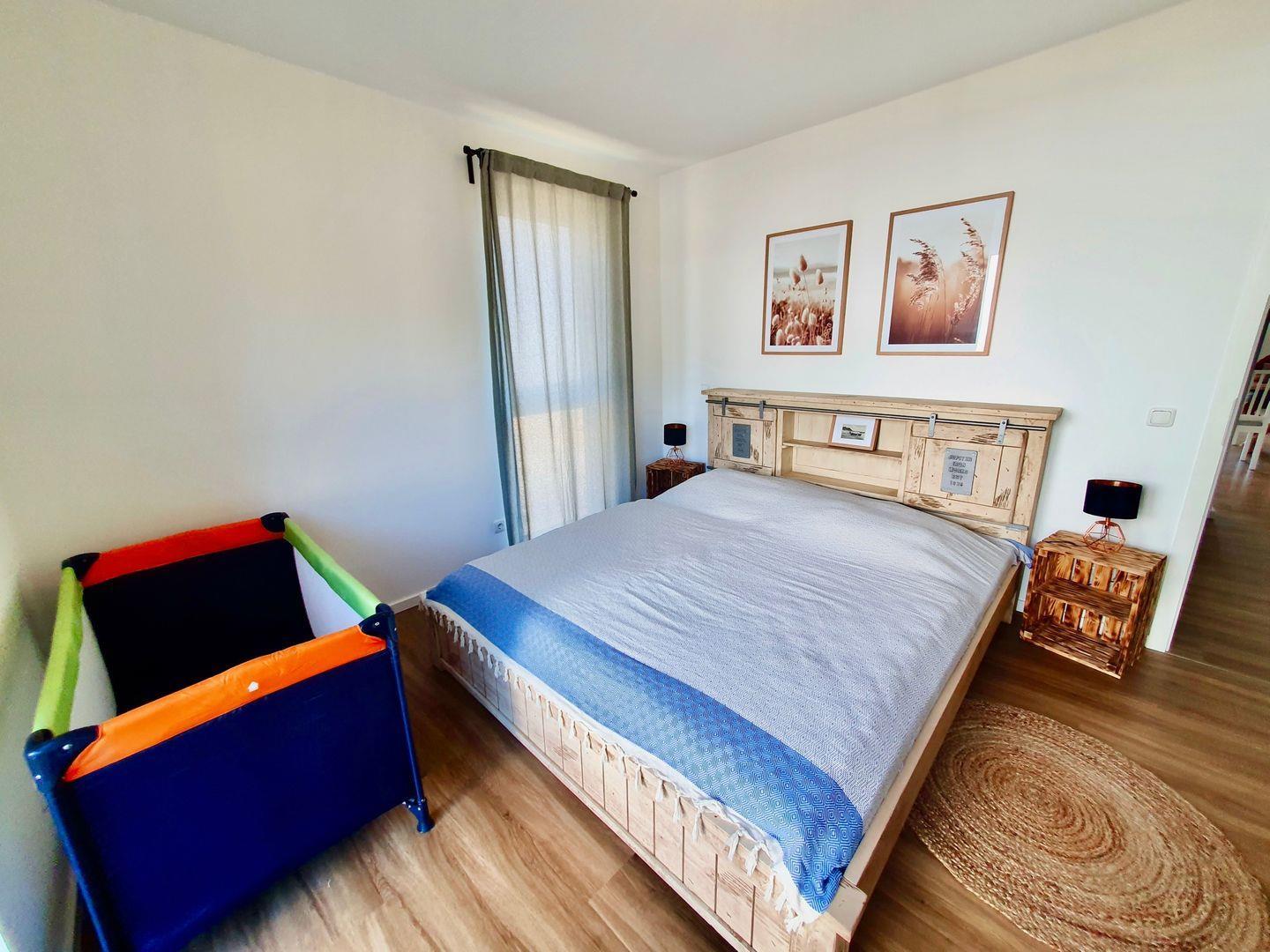 Diese hochwertig und liebevoll eingerichtete Wohnung bietet auf 68 m² viel Platz für Familien. Sie ist ideal für zwei Erwachsene und 3 Kinder geeignet. Die Wohnung umfasst ein gemütliches Schlafzimmer mit einem 180 cm-Bett, ein kinderfreundliches Zimmer mit Doppelstockbett (zwei 90 cm-Matratzen), eine großzügige Wohnküche sowie ein modernes Bad mit Dusche. Durch ein ausziehbares Sofa im Wohnbereich können bequem zwei weitere Personen beherbergt oder z. B. gemütlich Stunden vor dem Fernseher verbracht werden.