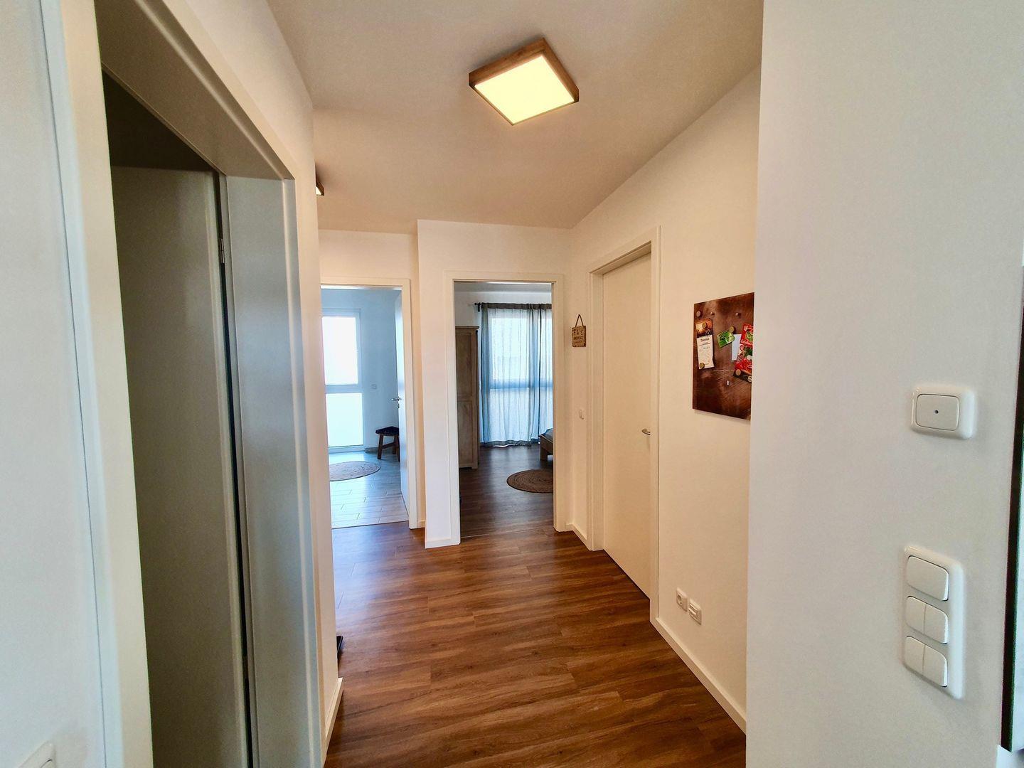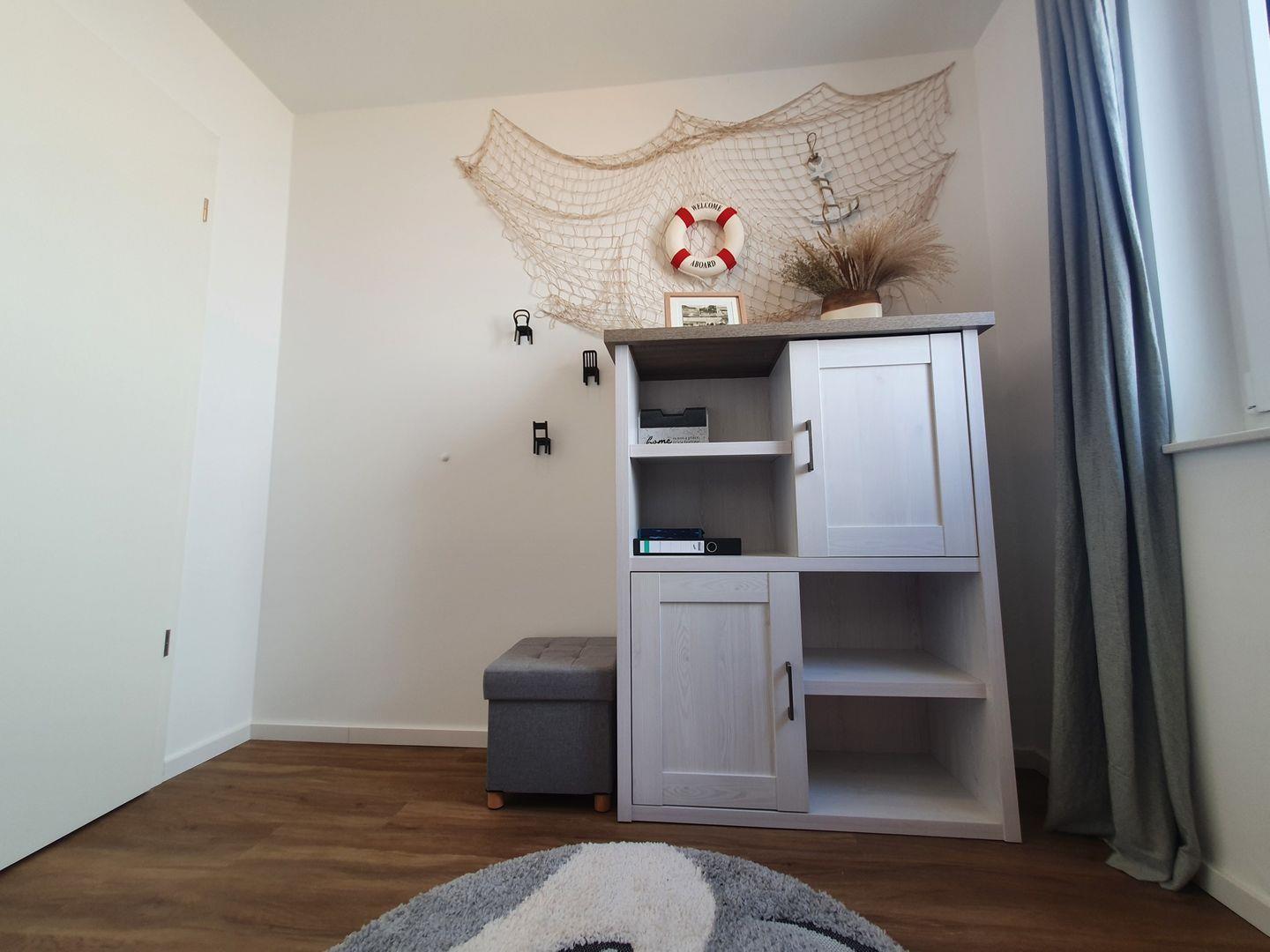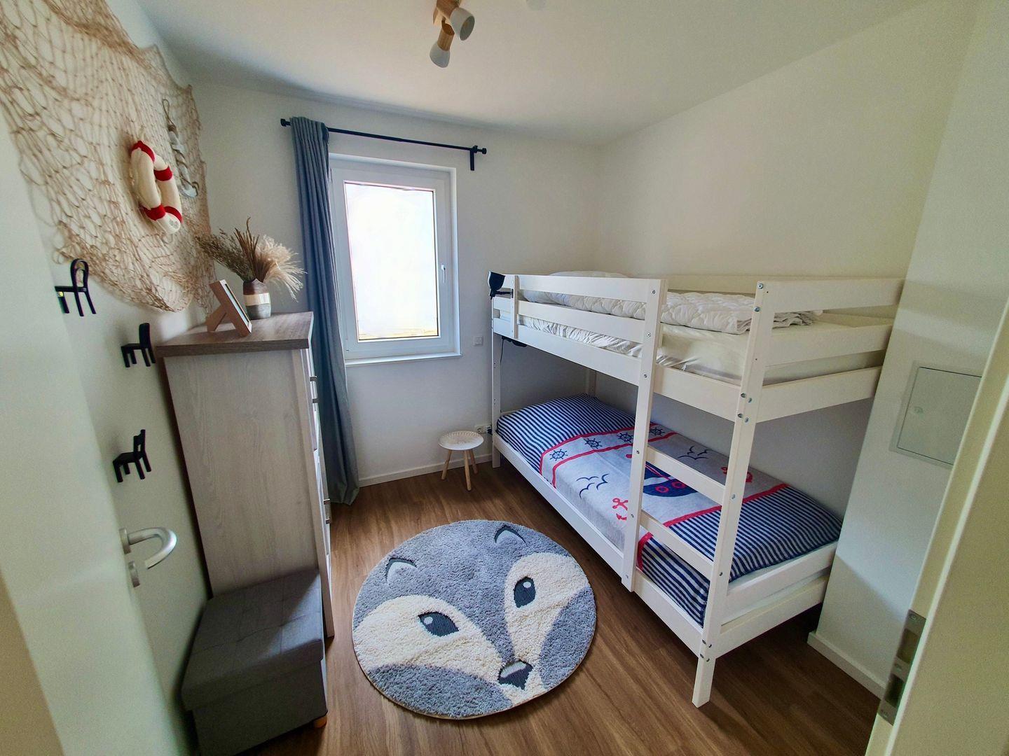 Diese hochwertig und liebevoll eingerichtete Wohnung bietet auf 68 m² viel Platz für Familien. Sie ist ideal für zwei Erwachsene und 3 Kinder geeignet. Die Wohnung umfasst ein gemütliches Schlafzimmer, ein kinderfreundliches Zimmer mit Doppelstockbett, eine großzügige Wohnküche sowie ein modernes Bad mit Dusche. Durch ein ausziehbares Sofa im Wohnbereich können bequem zwei weitere Personen beherbergt oder z. B. gemütlich Stunden vor dem Fernseher verbracht werden.