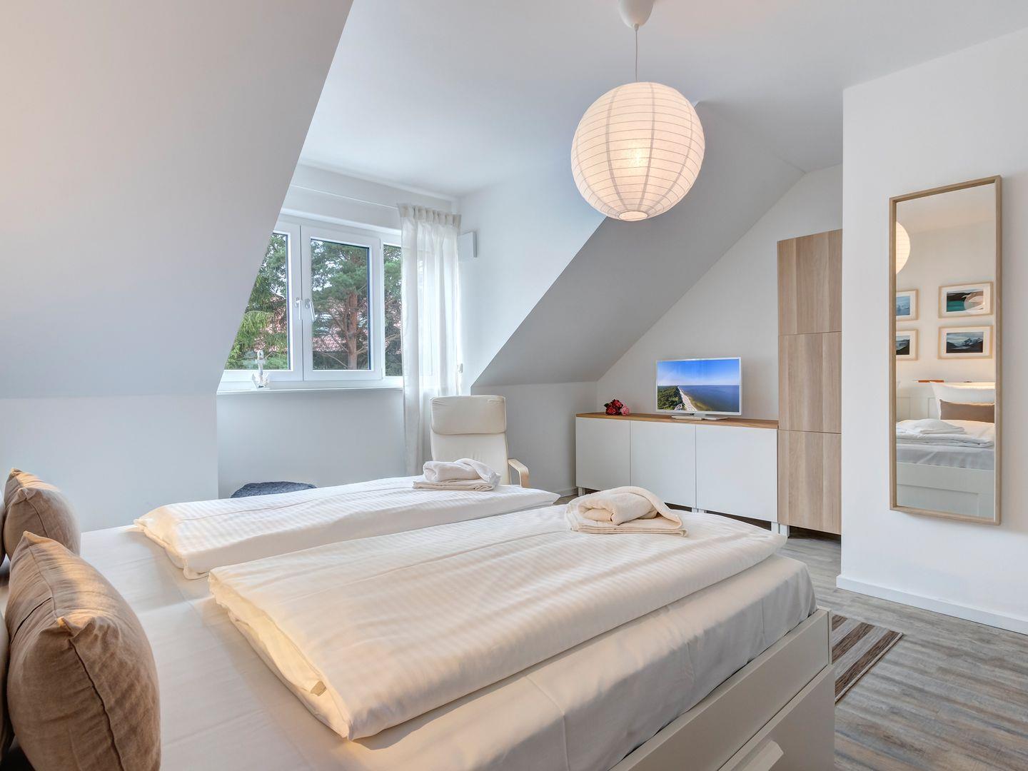 Auch im Urlaub nicht auf Komfort verzichten! Nach dem Strandgetümmel warten drei Rückzugsräume mit Fernsehern auch in den beiden Schlafräumen, Riesenkuschelcouch im Wohnzimmer, zwei hochwertige Duschbäder auf jeder Etage, offene Komfortküche zum Kochen mit der ganzen Familie, ohne dass jemand abwaschen muss (Geschirrspüler), Sonnenfrühstücksterrasse mit Frühstücksecke und Lümmelsesseln unterm Sonnen-/Regenschirm, Abendsonne im überdachten Hauseingangsbereich und Schlafzimmer mit Mückenschutz. Und für die Kinder die Sensation: Karl‘s Erdbeerhof quasi vor der Haustür. Neben dem Badevergnügen kommen auch Naturfreunde auf ihre Kosten: Biber am Kölpinsee, Orchideenwiese, Wandern auf dem Streckelsberg, Sonnenuntergang am Achterwasser. Wen es über die Sonneninsel Usedom hinauszieht, kann auch durch den neuen Swinetunnel in Swinemünde bis nach Stettin und Danzig die polnische Ostseeküste erkunden.