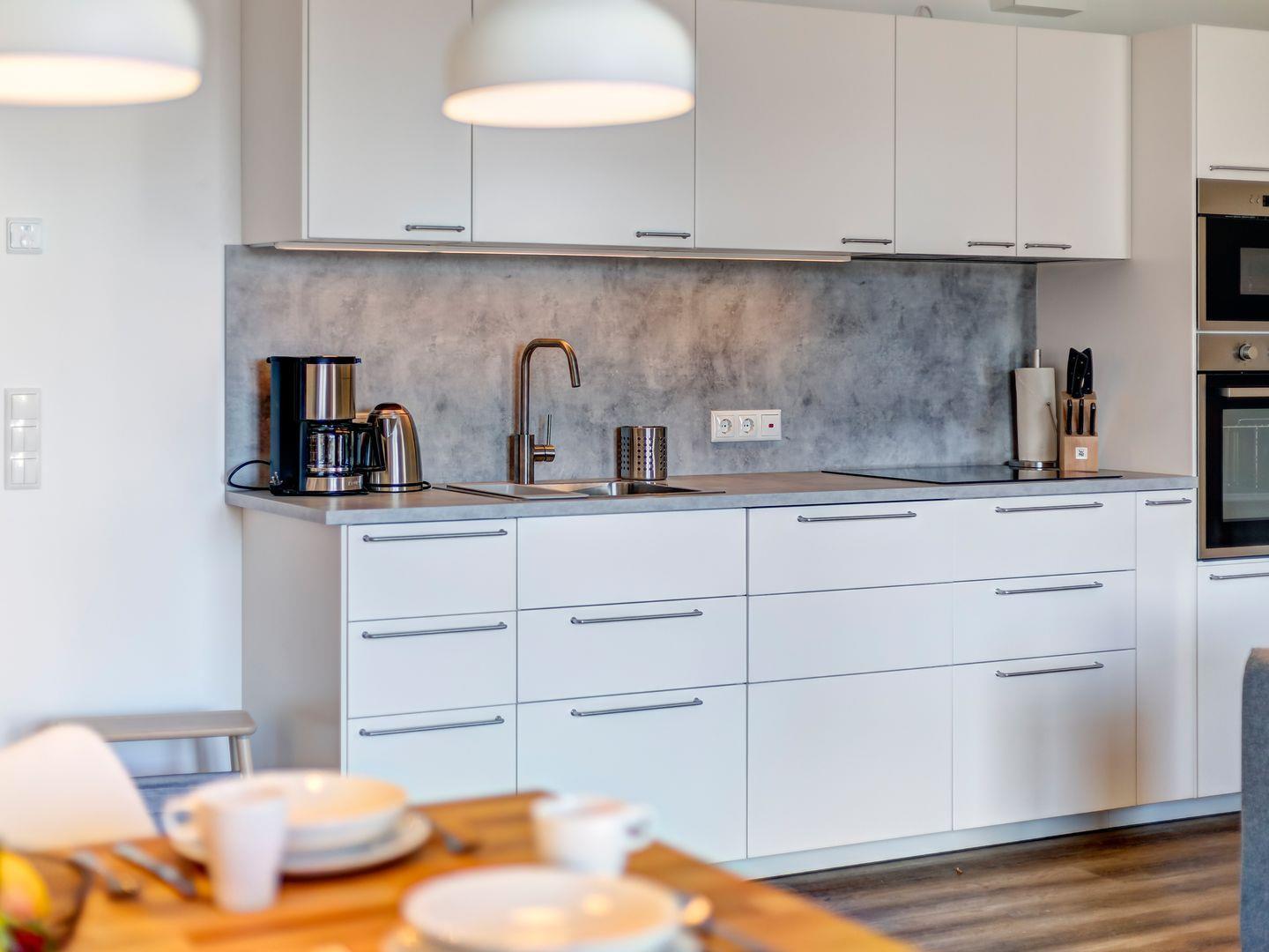 Zur Ausstattung gehören ein kostenfreier Parkplatz, freies WLAN, zwei Flachbild-TVs und eine moderne Einbauküche mit Mikrowelle, Geschirrspüler, Induktionskochfeld, Backofen, Kühl-Gefrierkombination, Kaffeemaschine, Wasserkocher, Toaster und mehr.