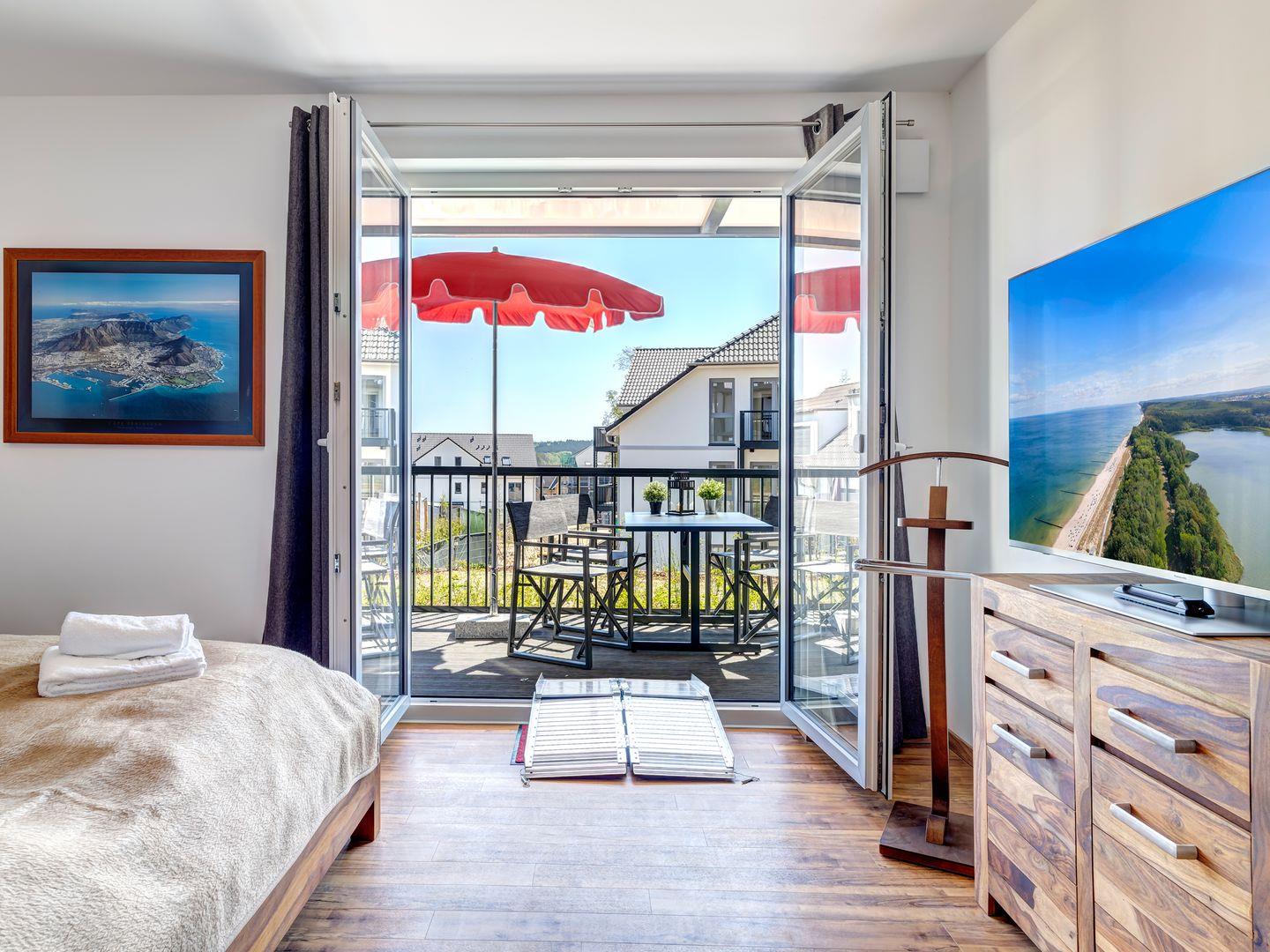 Die Ferienwohnung BQ 0551 in Kölpinsee bietet ökologische Möbel aus Teak und Mooreiche sowie Ölgemälde. Thermo-Vorhänge sorgen für Sonnenschutz und Akustik. Rollstuhlfreundlich mit Rampen und barrierefreiem Bad, inkl. Duschstuhl. Zwei Schlafzimmer, Schlafcouch, Smart-TVs, Küche und Tiefgaragenplatz bieten Komfort. Kleine Hunde bis 6 kg und Blindenhunde sind willkommen.