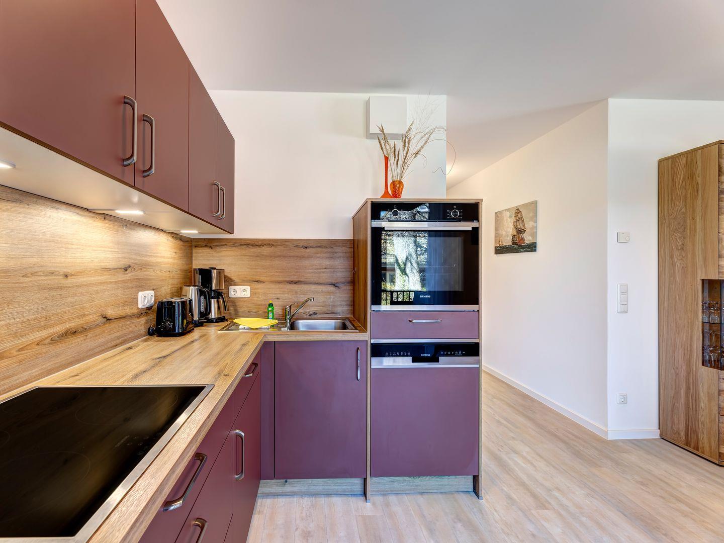 Beginnen Sie Ihren Morgen mit einem köstlichen Frühstück auf dem überdachten Balkon oder im lichtdurchfluteten Wohnbereich. Die integrierte Küche ist vollausgestattet und lässt keine Wünsche offen - perfekt, um gemeinsam zu kochen und zu genießen.