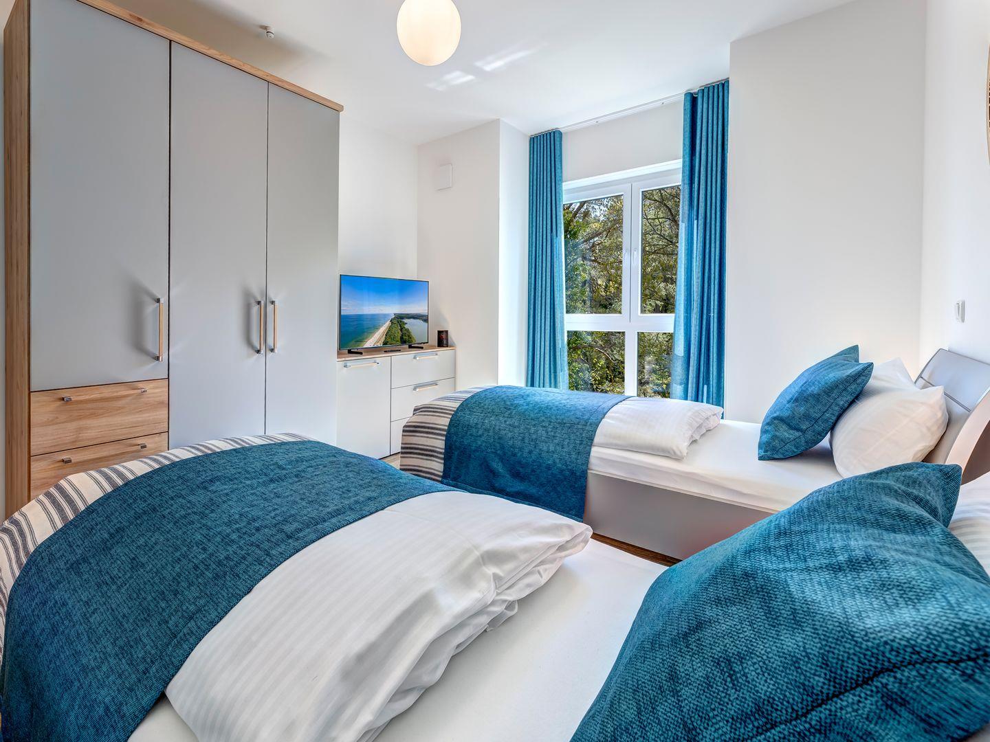 Die neue, allergikerfreundliche Wohnung „Ostseeliegeplatz 61“ im 2. OG ist hell, hochwertig eingerichtet und bietet mit Fußbodenheizung und elektrischen Rolläden höchsten Komfort. Zwei Schlafzimmer für 4 Personen und ein großes Wohnzimmer mit ausziehbarer Sitzecke sorgen für Gemütlichkeit. Die moderne Küche und der Essbereich laden zu gemeinsamen Mahlzeiten ein. Ein Balkon bietet Aussicht, zwei Duschbäder und WLAN sind vorhanden. Tiefgaragenparkplatz inklusive.