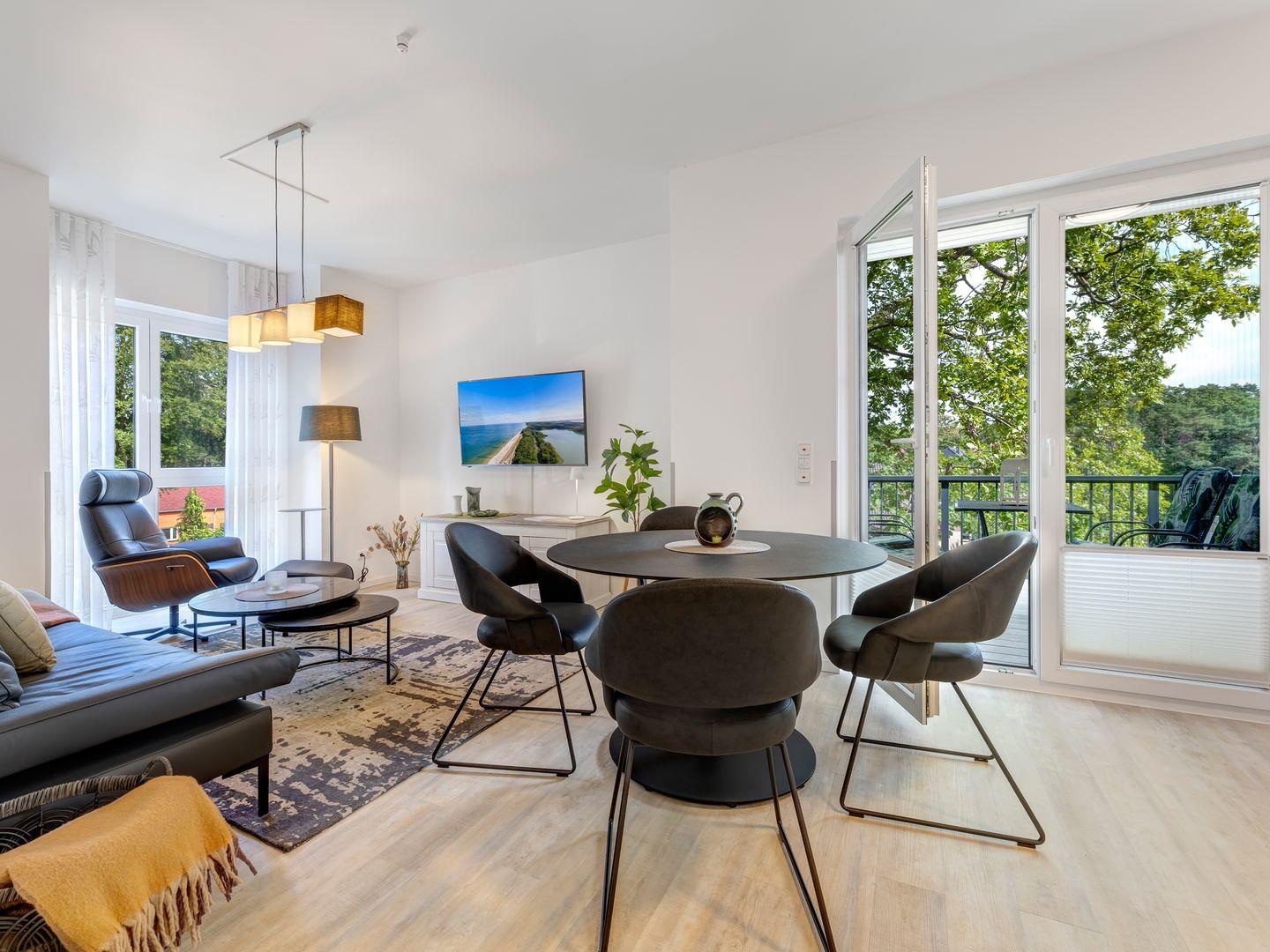 Moderne Ferienwohnung mit 2 Schlafzimmern, 2 Bädern, Balkon und WLAN nahe Strand und Natur in Kölpinsee.