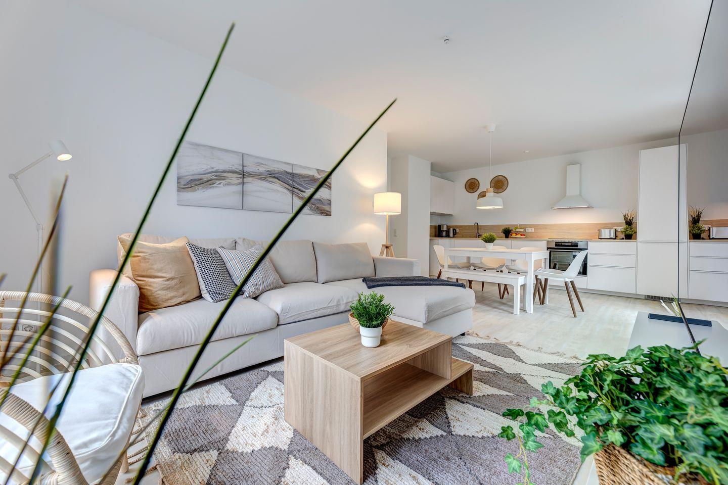 Das stilvoll eingerichtete Wohnzimmer mit angrenzender Küche bietet ausreichend Platz, um gemeinsame Stunden mit Familie oder Freunden zu verbringen – sei es nach einem erlebnisreichen Tag am Strand oder einer spannenden Erkundungstour über die Insel. Die moderne Küche ist mit hochwertigen Geräten ausgestattet und lädt zu geselligen Kochabenden ein.