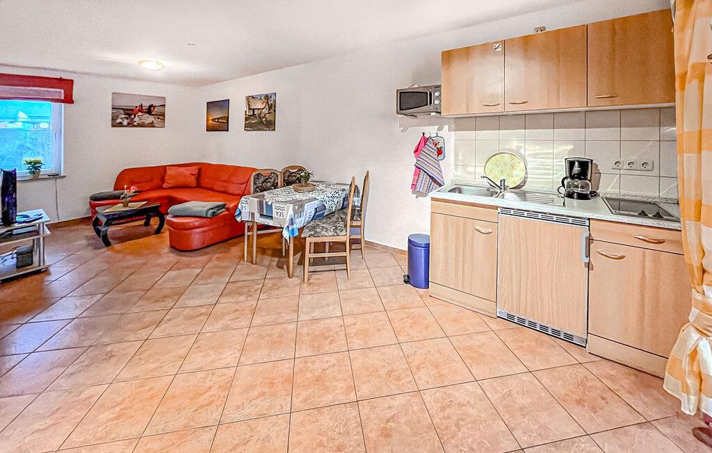 Diese eine von drei Ferienwohnungen befindet sich in einem separaten Ferienhaus im Reihenhausstil mit separatem Zugang. Ruhige Lage in einer Seitenstraße, ca. 500 m vom Strand entfernt. Die Wohnung verfügt über ein Wohnzimmer (Doppelschlafcouch, Essecke, TV, Radio), Schlafzimmer mit Doppelbett, Pantryküche mit 2-Plattenherd und Mikrowelle, Dusche/WC, Zentralheizung. Zur Wohnung gehört eine möblierte Terrasse mit Grill und ein kostenfreier Parkplatz. Nutzung einer Waschmaschine nach Absprache möglich. Im Gesamtpreis sind enthalten: Bettwäsche, Wasser- und Energieverbrauch. Sie müssen Ihre eigenen Handtücher mitbringen. Haustiere: Ein kleiner Hund (keine Katze) bis zu einer Größe von 40 cm ist in dieser Unterkunft gestattet. Bitte bringen Sie eine Matte/Schlafmöglichkeit (Decke, Korb) für Ihr Tier mit.