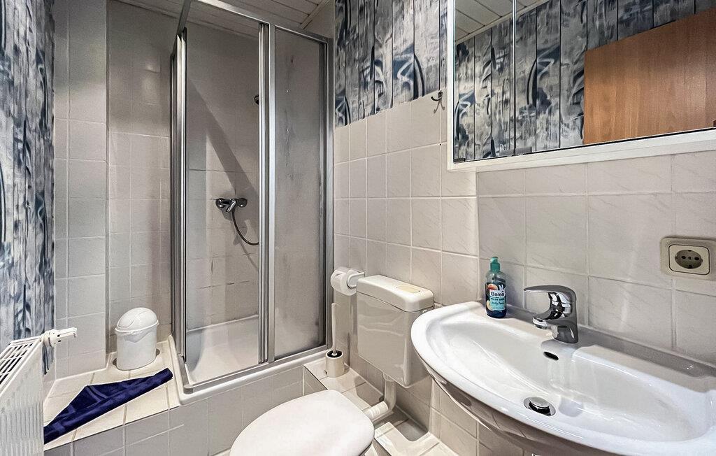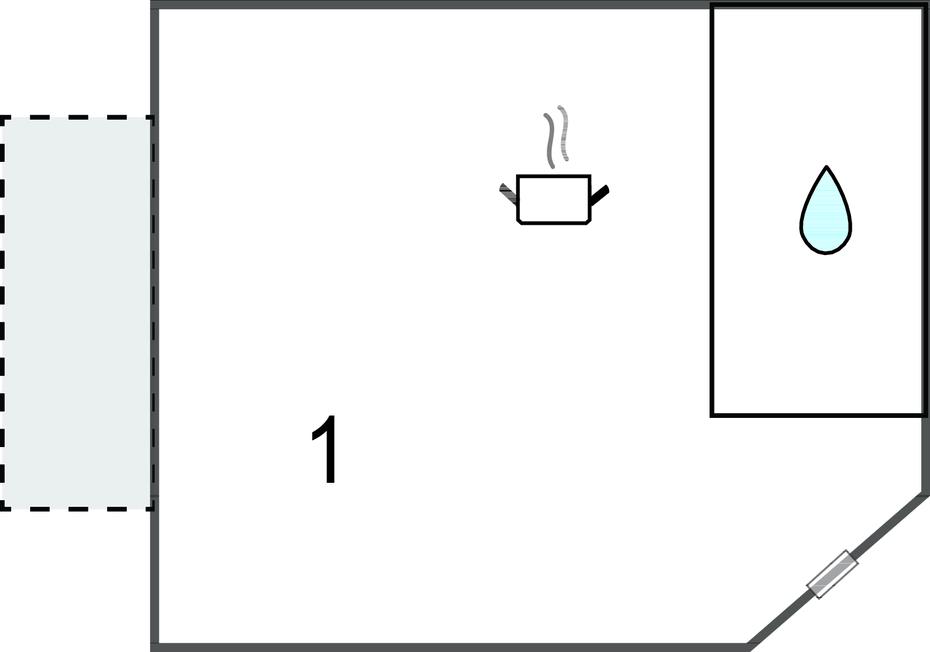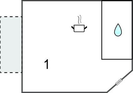 Die kleine Einraum-Wohnung für 2 Personen befindet sich im Obergeschoss und verfügt über einen möblierten Balkon. Sie ist ausgestattet mit einem kombinierten Wohn-/Schlafraum mit offener Küchenzeile (Doppelbett, Sitz- und Essecke, Flachbild-TV, E-Kochfeld, Kühlschrank mit Tiefkühlteil, Mikrowelle, div. Küchengeräte), sowie einem Bad mit DU/WC.