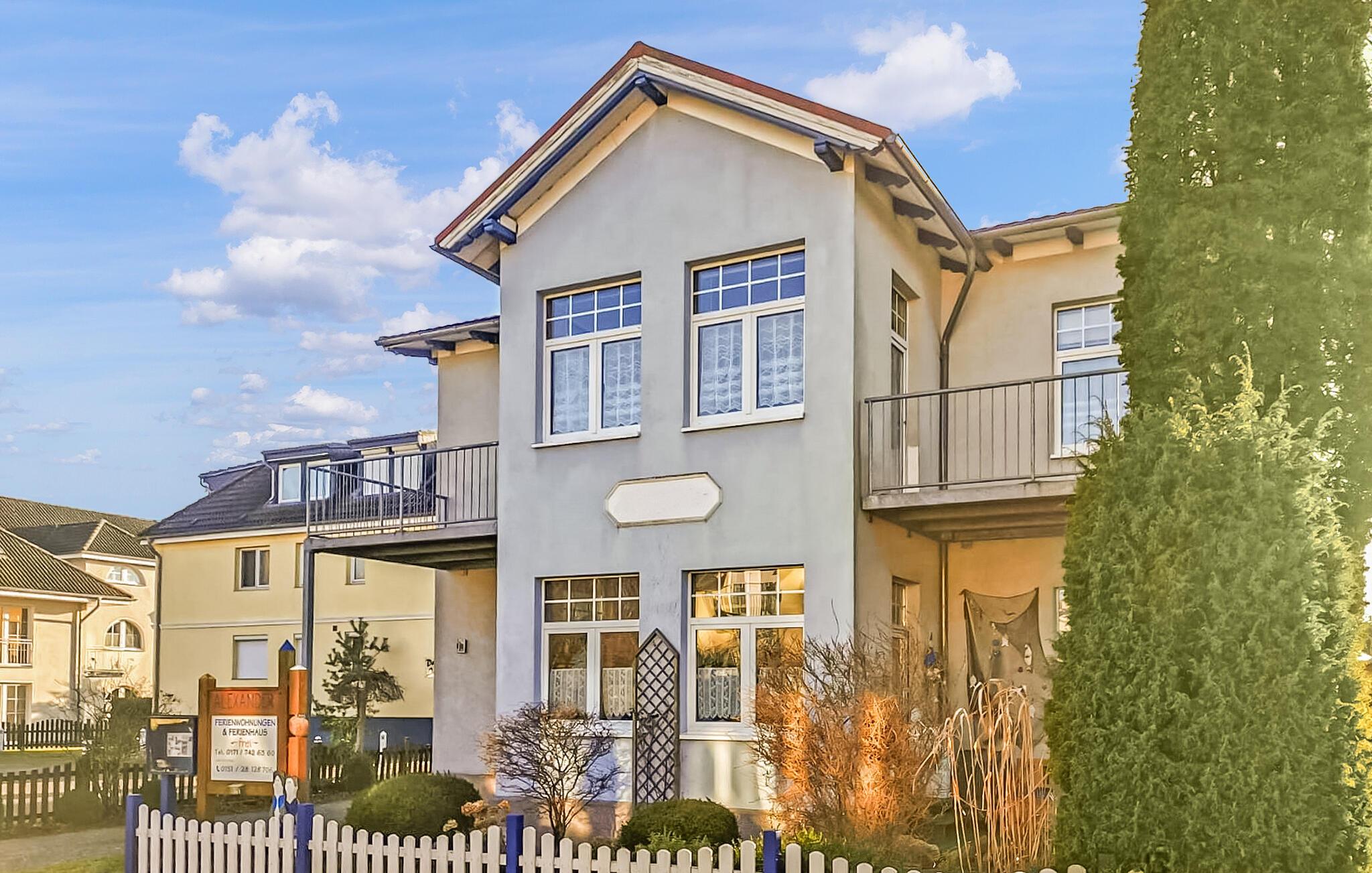 Die sechs Nichtraucher-Ferienwohnungen unterschiedlicher Größe und Ausstattung befinden sich separat im Erdgeschoss bzw. im Obergeschoss eines Apartmenthauses in zentraler Ortslage. Auf dem Grundstück gibt es zudem ein Ferienhaus (DZV870). Der Ostseestrand mit Strandpromenade, Restaurants/Cafés und der Bahnhof der Usedomer Bäderbahn befinden sich im Umkreis von etwa 500 m.