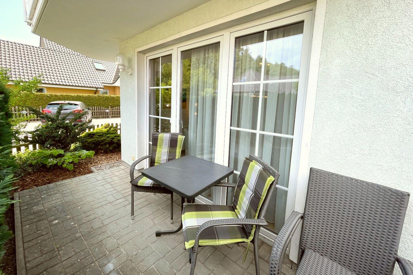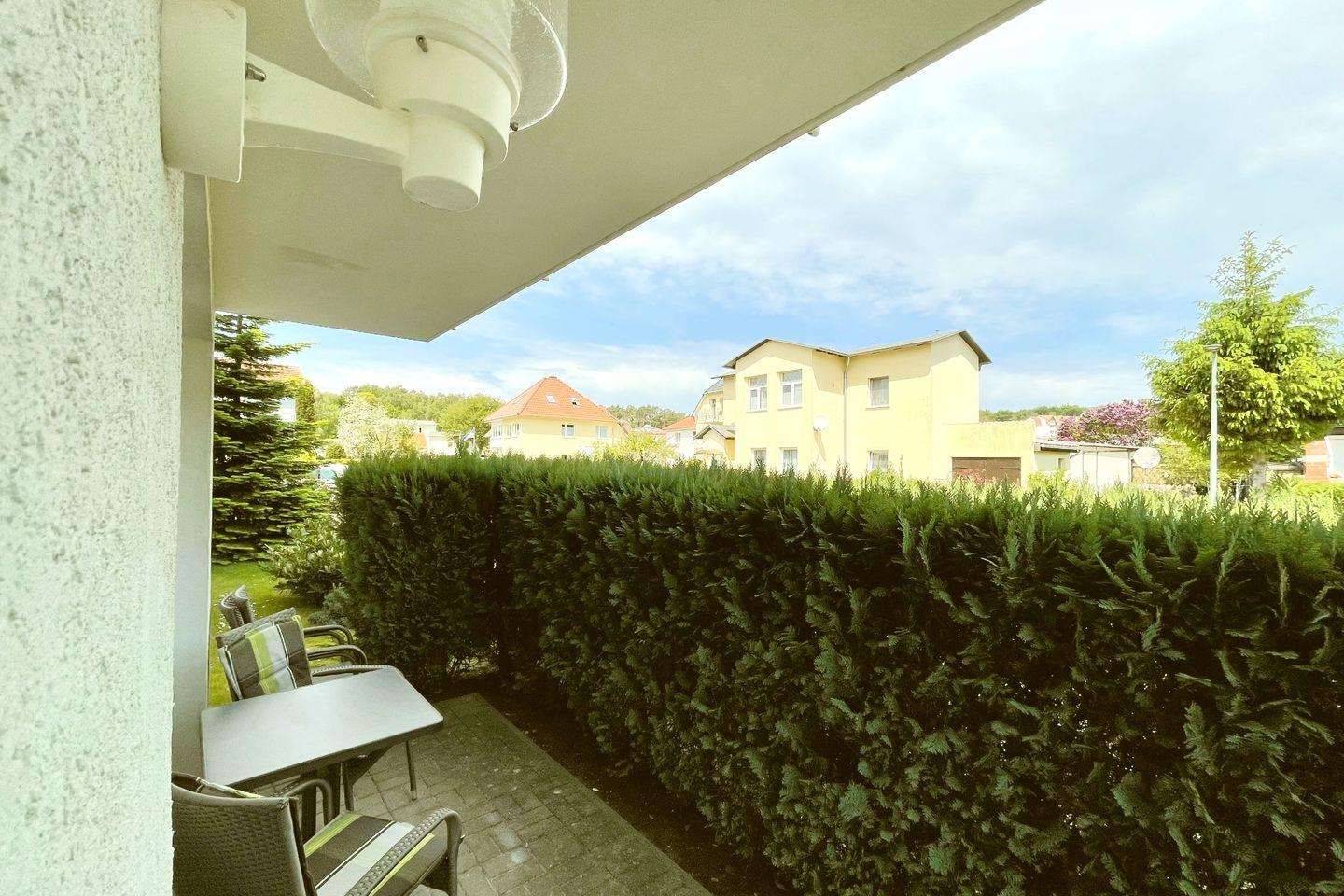 Charmante Ferienwohnung an der Ostsee mit überdachter Terrasse und Strand nur 550 Meter entfernt, ideal für erholsame Tage.