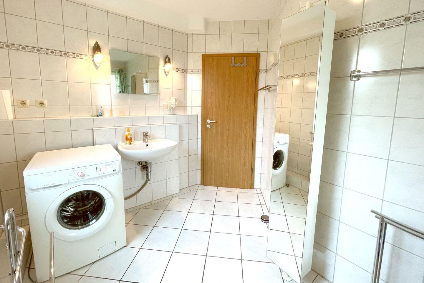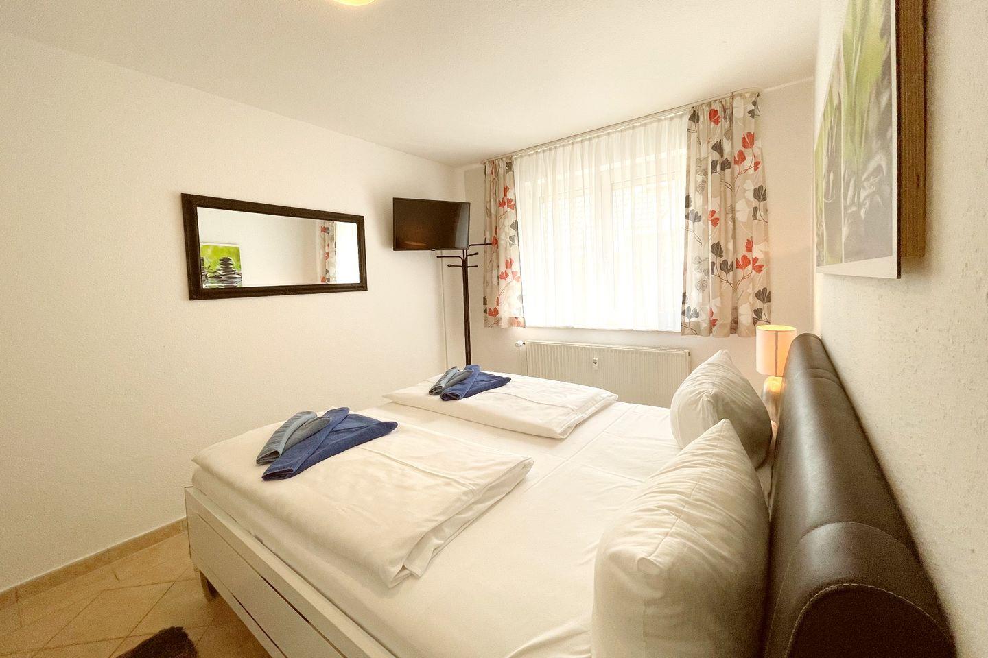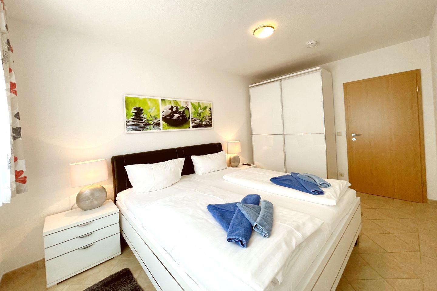 Die Ferienwohnung besteht aus einem großzügigen Schlafzimmer und einem einladenden Wohnzimmer, das mit einer Sofaecke, einem Esstisch und Fernseher ausgestattet ist. Hier können Sie entspannte Abende verbringen und die Zeit gemeinsam genießen. Die voll ausgestattete, geschlossene Küche lässt keine Wünsche offen: Von einem Cerankochfeld über einen Backofen und eine Spülmaschine bis hin zu Geschirr und Besteck – alles ist vorhanden, um sich selbst zu versorgen. Wenn Sie nach einem langen Tag am Strand zurückkehren, können Sie sich in der hellen, freundlich gestalteten Dusche mit Badewanne erfrischen oder entspannen.