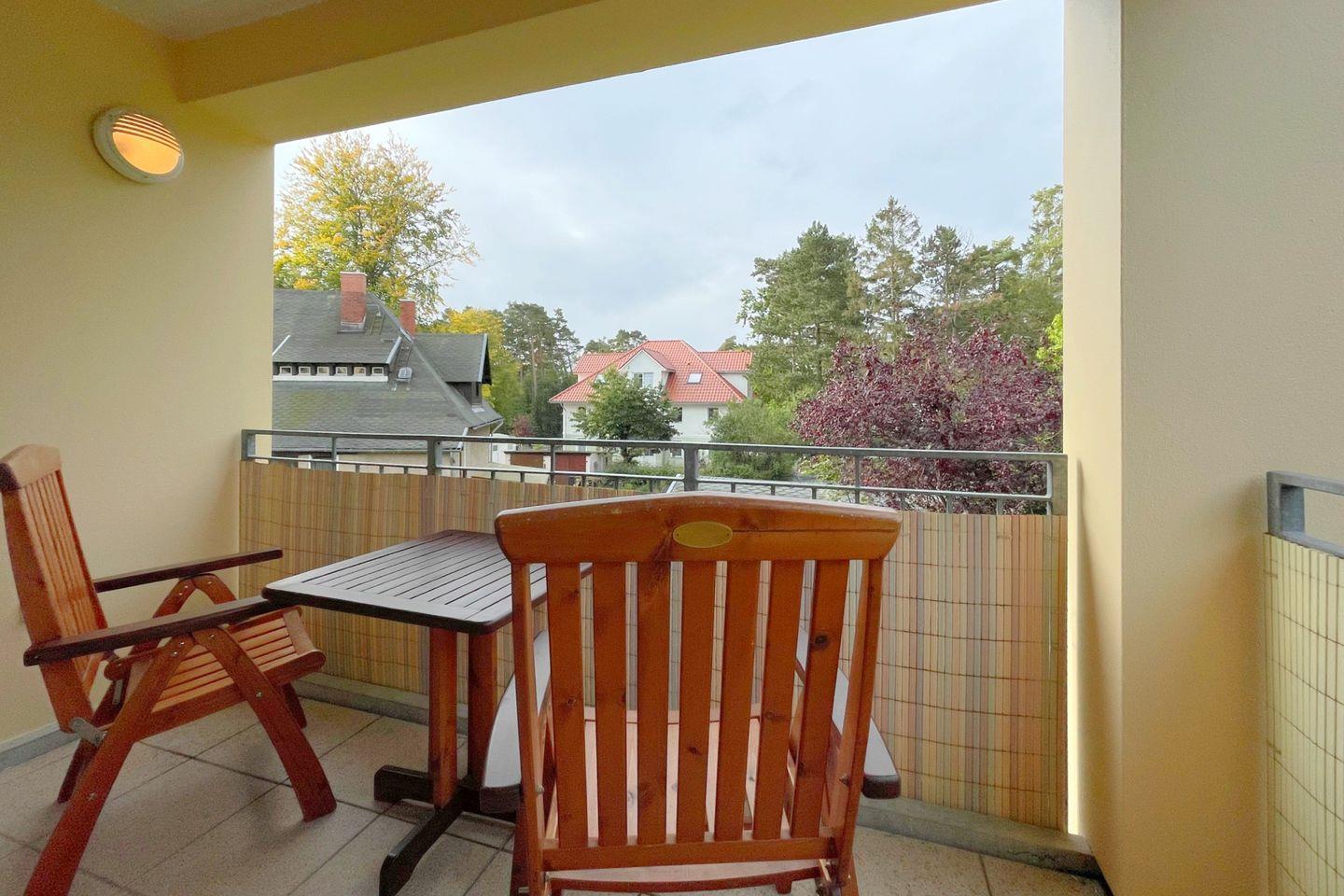 Eine erholsame Zeit im Freien verbringen Sie auf der überdachten Terrasse, die mit Gartenmöbeln ausgestattet ist. Hier können Sie den Blick in die grüne Umgebung genießen, während Sie beim Frühstück die frische Ostseeluft schnuppern oder den Abend bei einem Glas Wein ausklingen lassen. Die zentrale Lage der Unterkunft ermöglicht es Ihnen, in nur 550 Metern am Sandstrand zu sein – perfekt für erholsame Tage am Wasser, ob beim Sonnenbaden, Schwimmen oder bei einem der zahlreichen Wassersportaktivitäten.