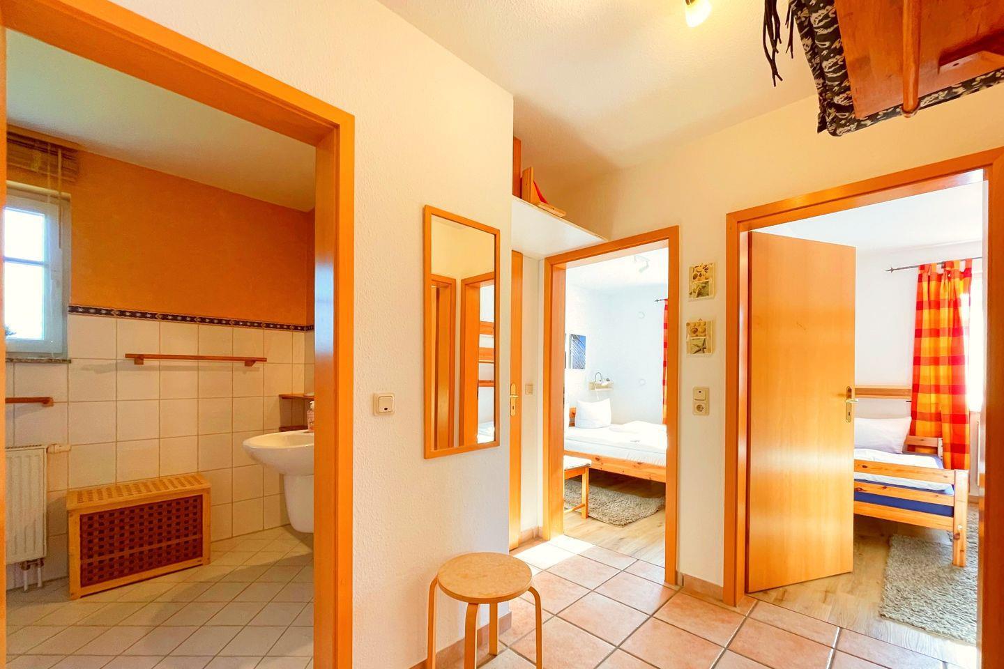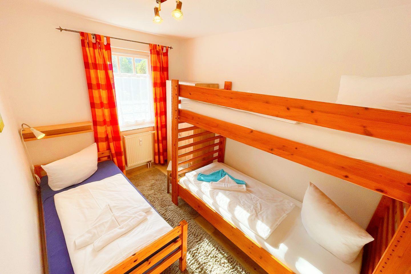 Das 3-Zimmer-Apartment im Erdgeschoss begrüßt Sie mit einer Sonnenterrasse in Südlage.Sehr ruhig und nur 3 Gehminuten von der Ostsee entfernt, gelegen. Das Wohnzimmer mit offener Küche, Essecke und bequemer Couch, bildet das Herzstück dieses Apartments. Ein Schlafzimmer ist mit einem Doppelbett, das andere ist mit einem Doppelstockbett und einem Einzelbett ausgestattet. In dem modernen Duschbad befindet sich neben dem WC ein Waschtisch mit Spiegel.