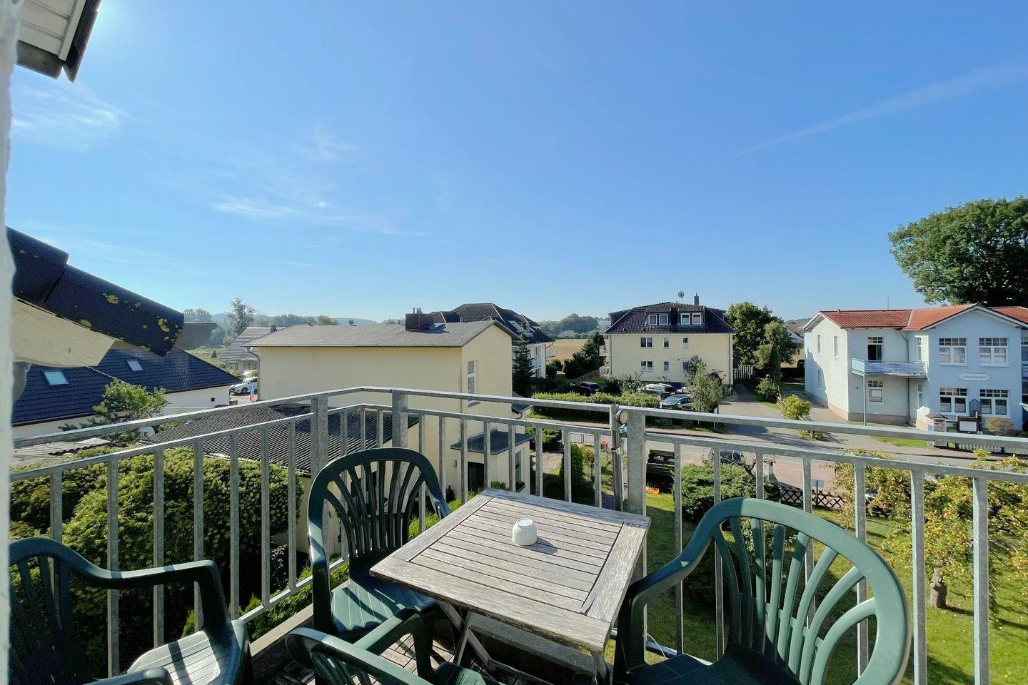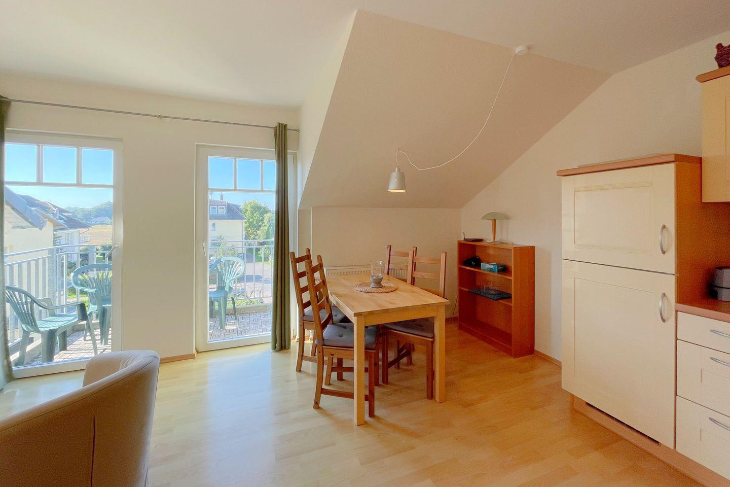 Charmante Ferienwohnung La Paloma 6 in Kölpinsee, nur 500 m vom Ostseestrand, ideal für Familien und Paare mit Gartenblick und Balkon.