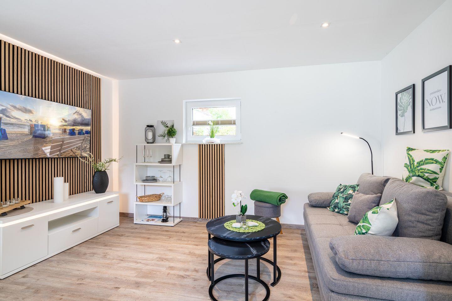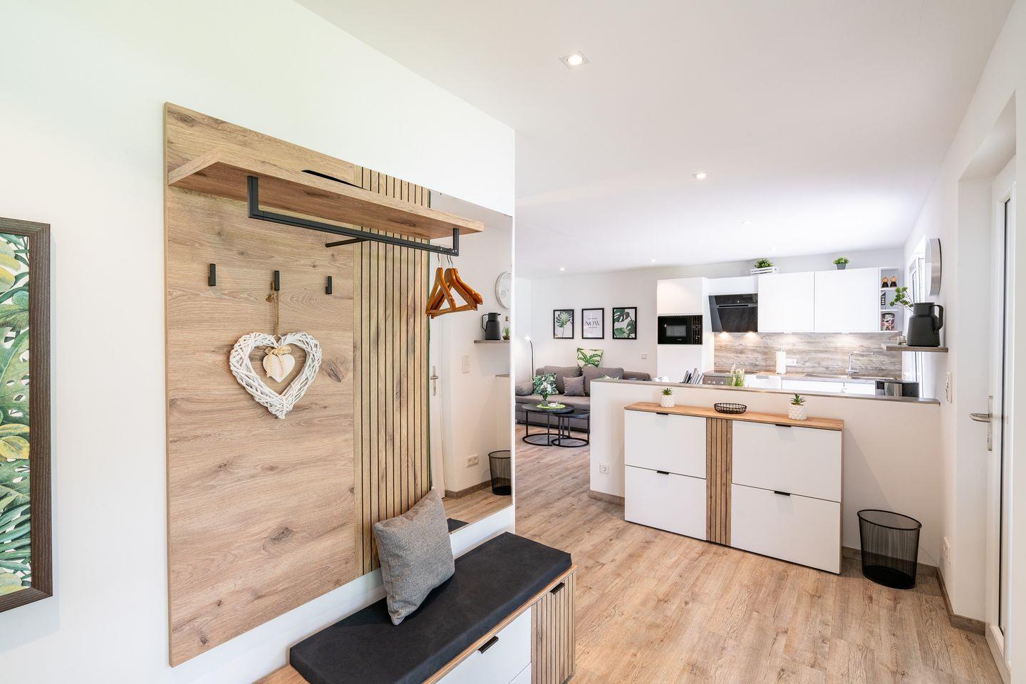 Das Ferienhaus verfügt über ein liebevoll gestaltetes Schlafzimmer, ein modernes Badezimmer mit bodengleicher Dusche und ein offenes Wohnkonzept, das die Wohnküche und den gemütlichen Wohnbereich harmonisch miteinander verbindet. Die voll ausgestattete Küche lässt keine Wünsche offen und verfügt über einen Backofen, eine Spülmaschine, einen Kühlschrank sowie eine Kaffeemaschine. Genießen Sie Ihr Frühstück am Esstisch und lassen Sie die Seele baumeln!