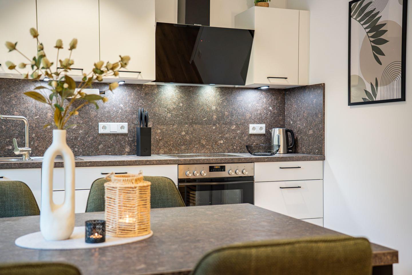 Das Ferienhaus wurde im Jahr 2025 neu erbaut und vollständig renoviert. Moderne Materialien und eine helle Raumgestaltung verbinden zeitgemäßes Wohnen mit gemütlichem Ambiente. Die offene Küche geht nahtlos in das Wohnzimmer über und ist mit einem Ceranherd, Backofen, Geschirrspülmaschine, Mikrowelle, Kühlschrank mit Gefrierfach, Kaffeemaschine, Toaster, Wasserkocher sowie sämtlichem Geschirr und Besteck umfassend ausgestattet. Für größere Familien oder Freunde steht ausreichend Platz zum gemeinsamen Kochen und Essen am Esstisch zur Verfügung. Eine gemütliche Sofaecke sowie ein großer TV mit internationalen Kanälen (44 – 55 Zoll) und digitalem Satellitenanschluss sorgen für entspannte Abende. Gesellschaftsspiele und ein Radio ergänzen das Freizeitangebot im Haus.