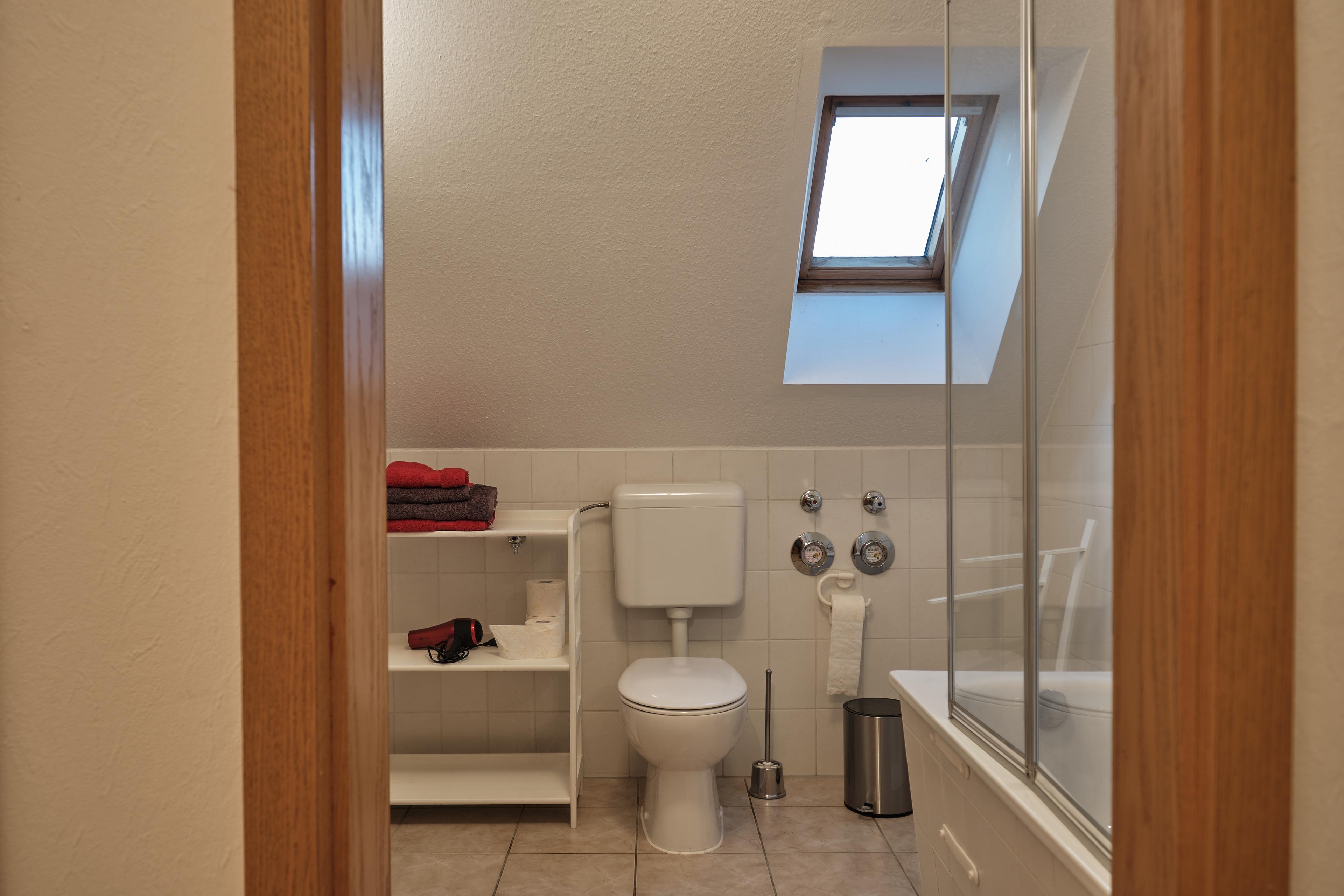 Es gibt ein Schlafzimmer mit zwei Betten, die zusammengestellt werden können. Zusätzlich kann im Wohnzimmer eine Aufbettung angeboten werden.