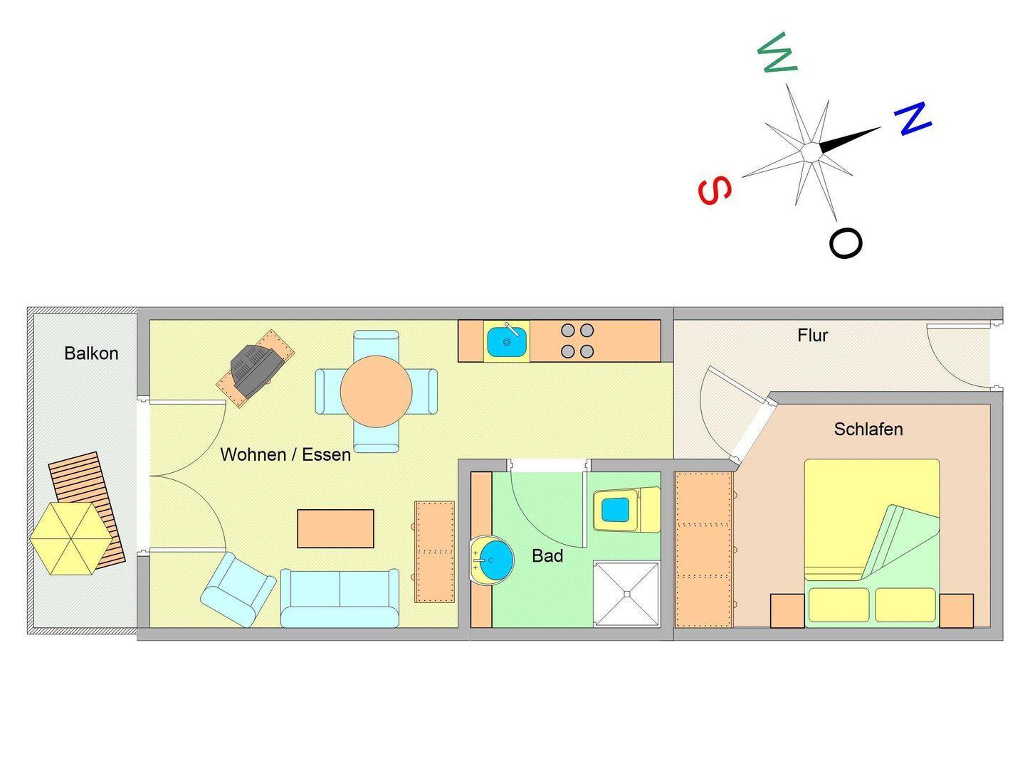 Die strandnahe, traumhaft gelegene und moderne 2-Zimmer-Wohnung (ca. 40 m²) im 2. Obergeschoss besitzt ein hohes Maß an Funktionalität und ist komplett eingerichtet. Der Bodenbelag im Schlafzimmer ist Teppichboden, alle anderen Räume der Wohnung sind gefliest.