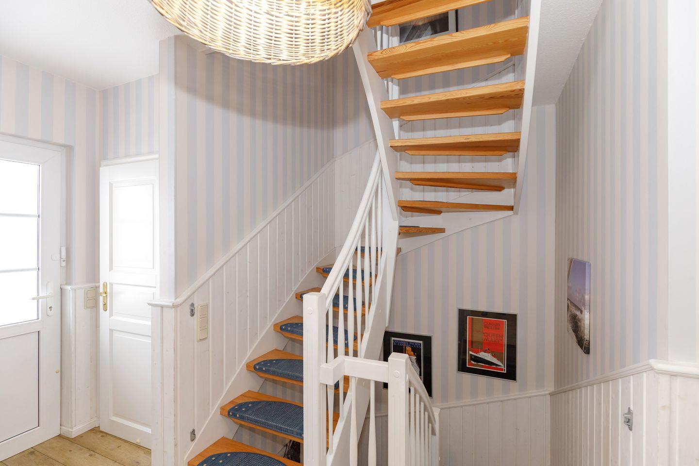 Die zweite Etage bietet ein weiteres gemütliches Doppelzimmer mit Sat-TV, ein 3-Bettzimmer mit französischem Bett und Schlafsessel sowie ein geschmackvolles Bad mit Dusche, WC und kleiner Whirlwanne. Fußbodenheizung, WLAN, zwei Kinderhochstühle und ein Babybett sorgen für zusätzlichen Komfort.