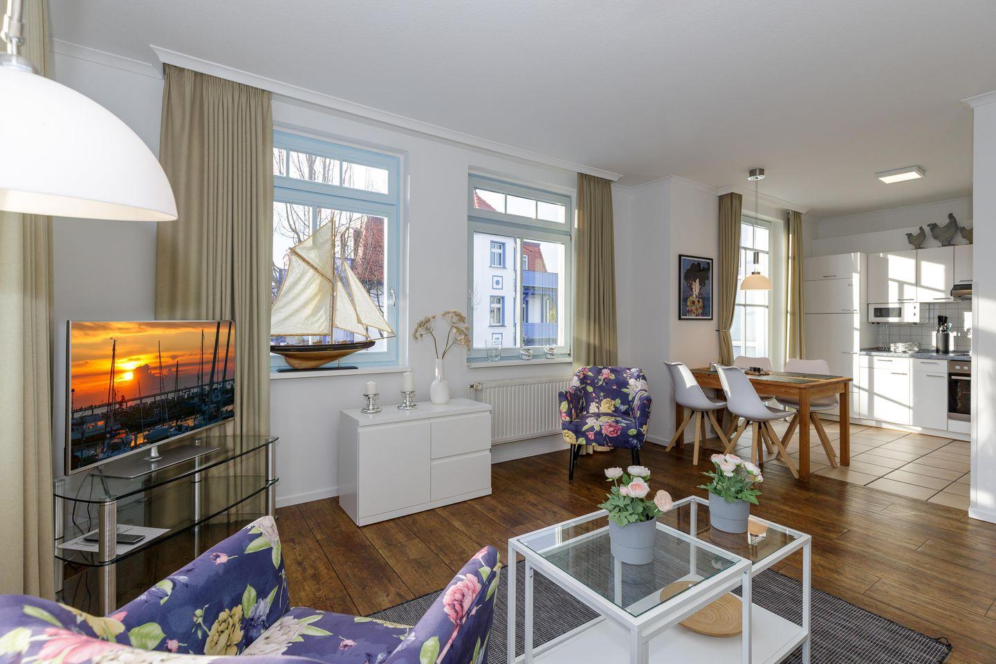 Moderne 2-Zimmer-Ferienwohnung mit Balkon im Herzen von Kühlungsborn, nahe Strand und Seebrücke.