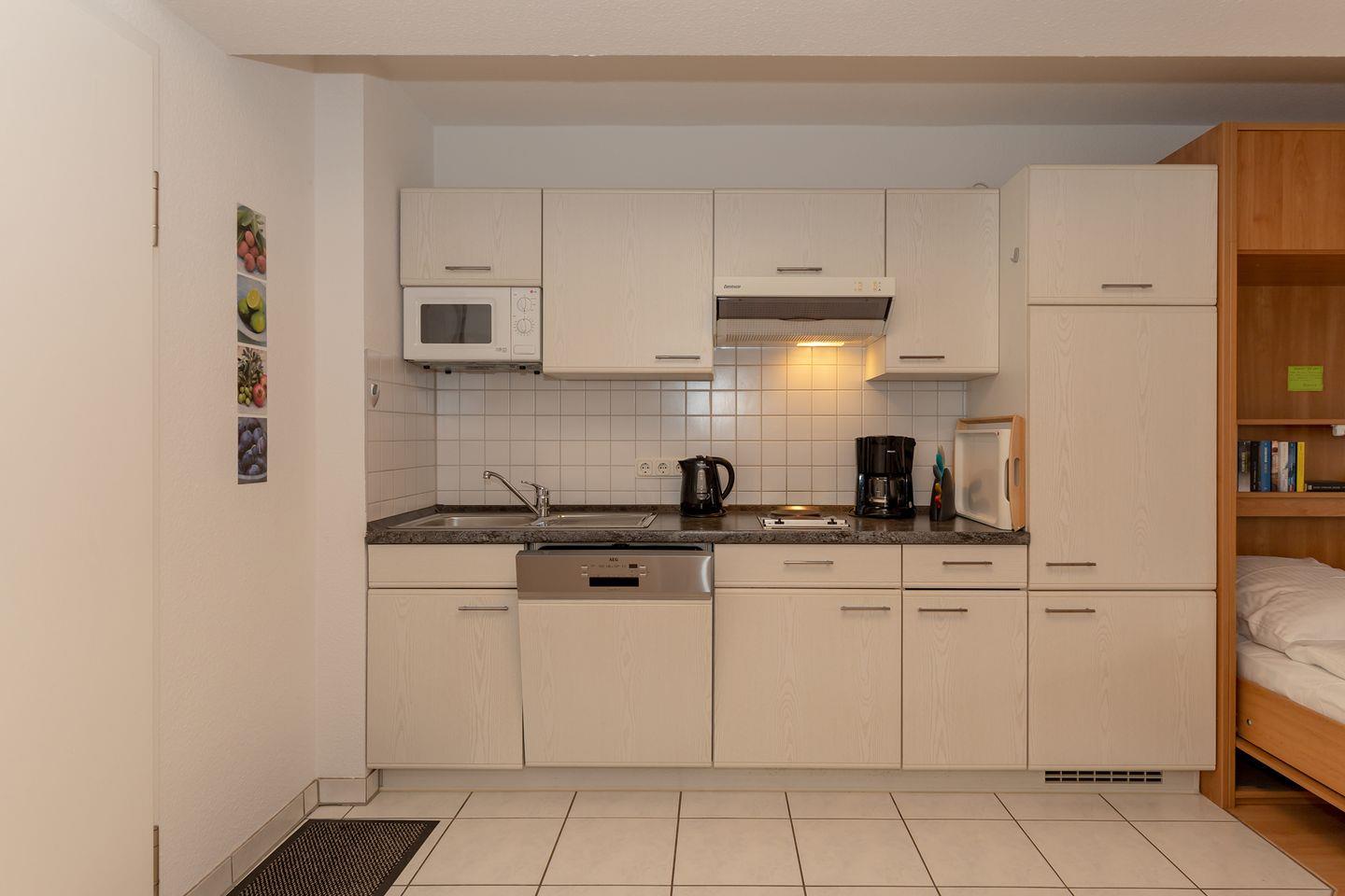 Die Küchenzeile ist perfekt ausgestattet, um all Ihren kulinarischen Wünschen gerecht zu werden. Hier finden Sie einen 2-Plattenherd, eine Geschirrspülmaschine, eine Mikrowelle, einen Wasserkocher und eine Kaffeemaschine. Selbstverständlich sind auch ausreichend Geschirr, Besteck und Küchenutensilien vorhanden, damit Sie sich in Ihrer kleinen kulinarischen Oase voll entfalten können.