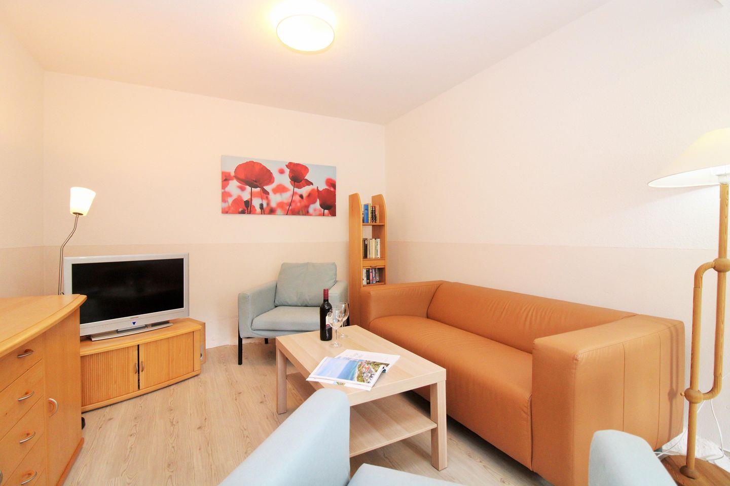 Zu Ihrer Unterhaltung stehen Ihnen in der Ferienwohnung ein modernes Flatscreen-TV-Gerät, eine Stereoanlage mit Radio und CD-Player, einen Video-Player sowie eine Auswahl an Büchern zur Verfügung. Darüber hinaus verfügt die Wohnung über kostenfreies WLAN (ohne Gewähr - gem. unseren AGB erfolgt keine Haftung bei eventuellen Störungen).