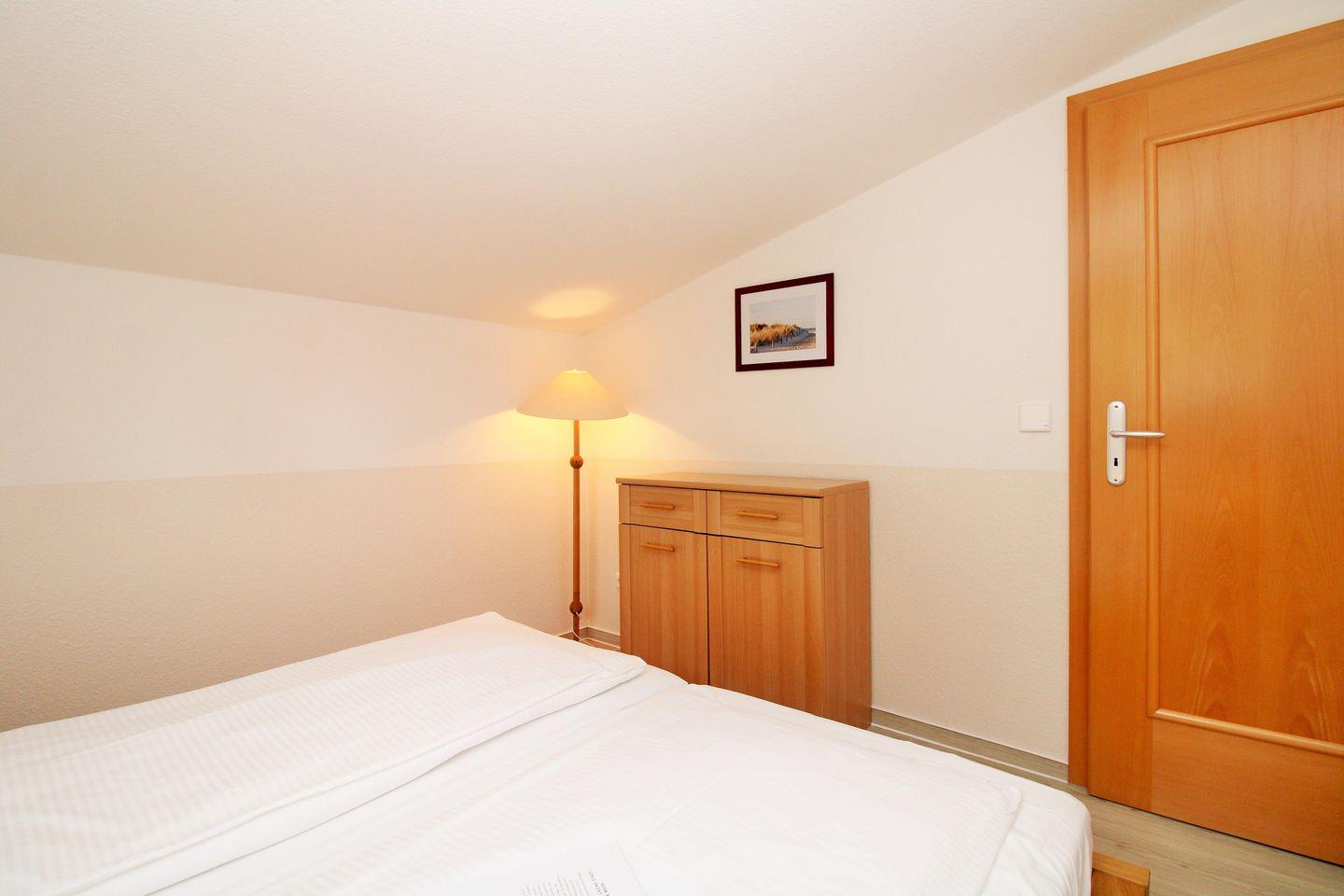 Das separate und zusätzliche 2. Schlafzimmer verfügt ebenfalls über ein bequemes Doppelbett (2 x 90 cm x 200 cm), Nachttische mit Nachttischlampen sowie eine Kommode.