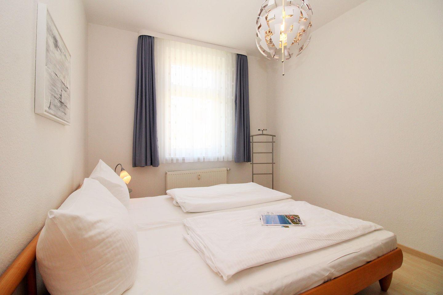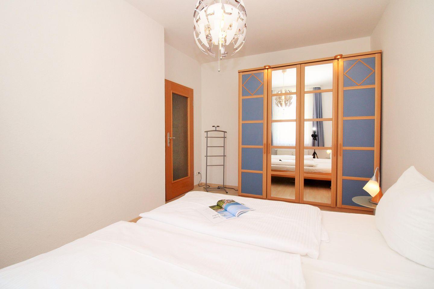 Das separate 2. Schlafzimmer ist ebenfalls mit einem bequemen Doppelbett (2 x 90 cm x 200 cm), Nachttischen mit Nachttischlampen sowie einem geräumigen Kleiderschrank eingerichtet.