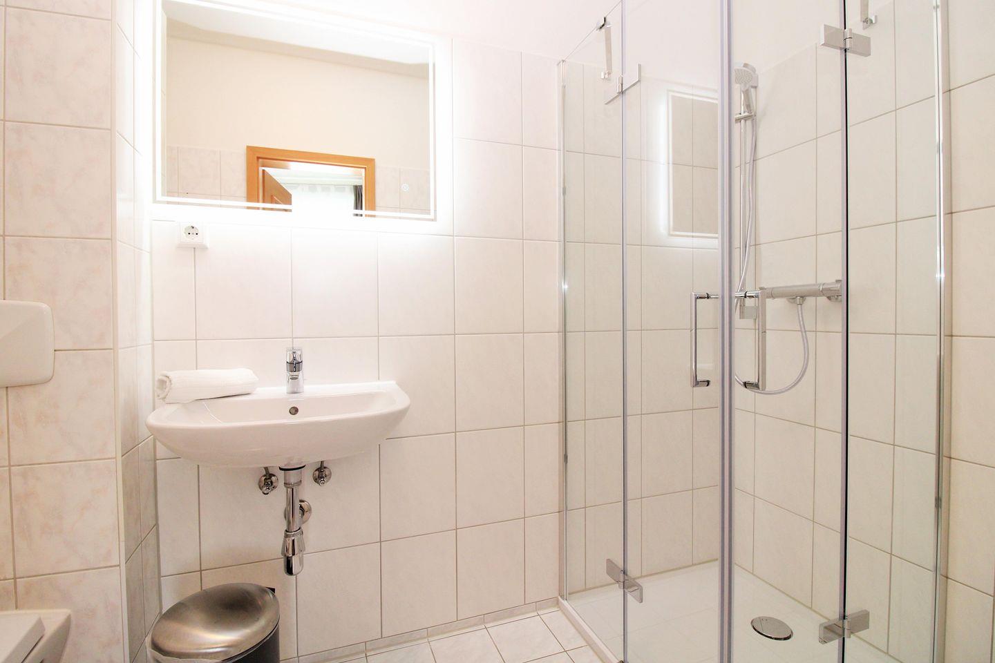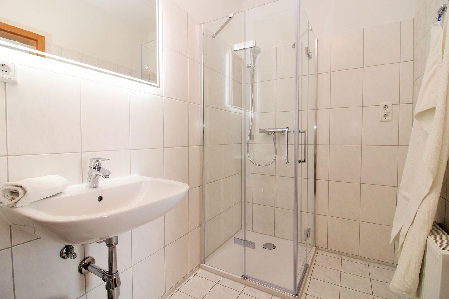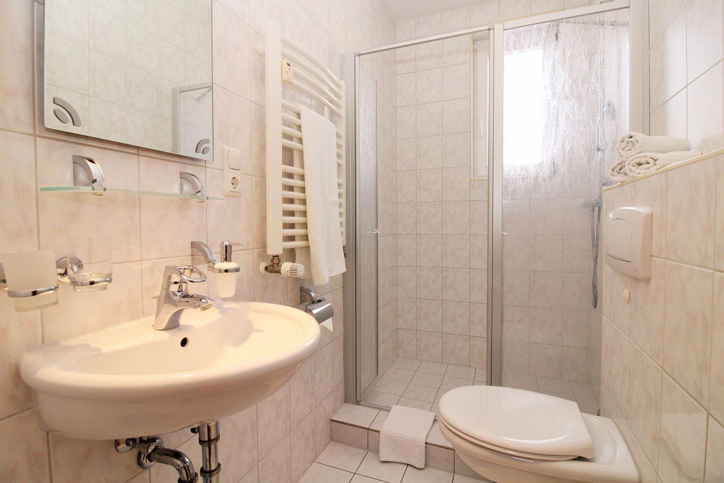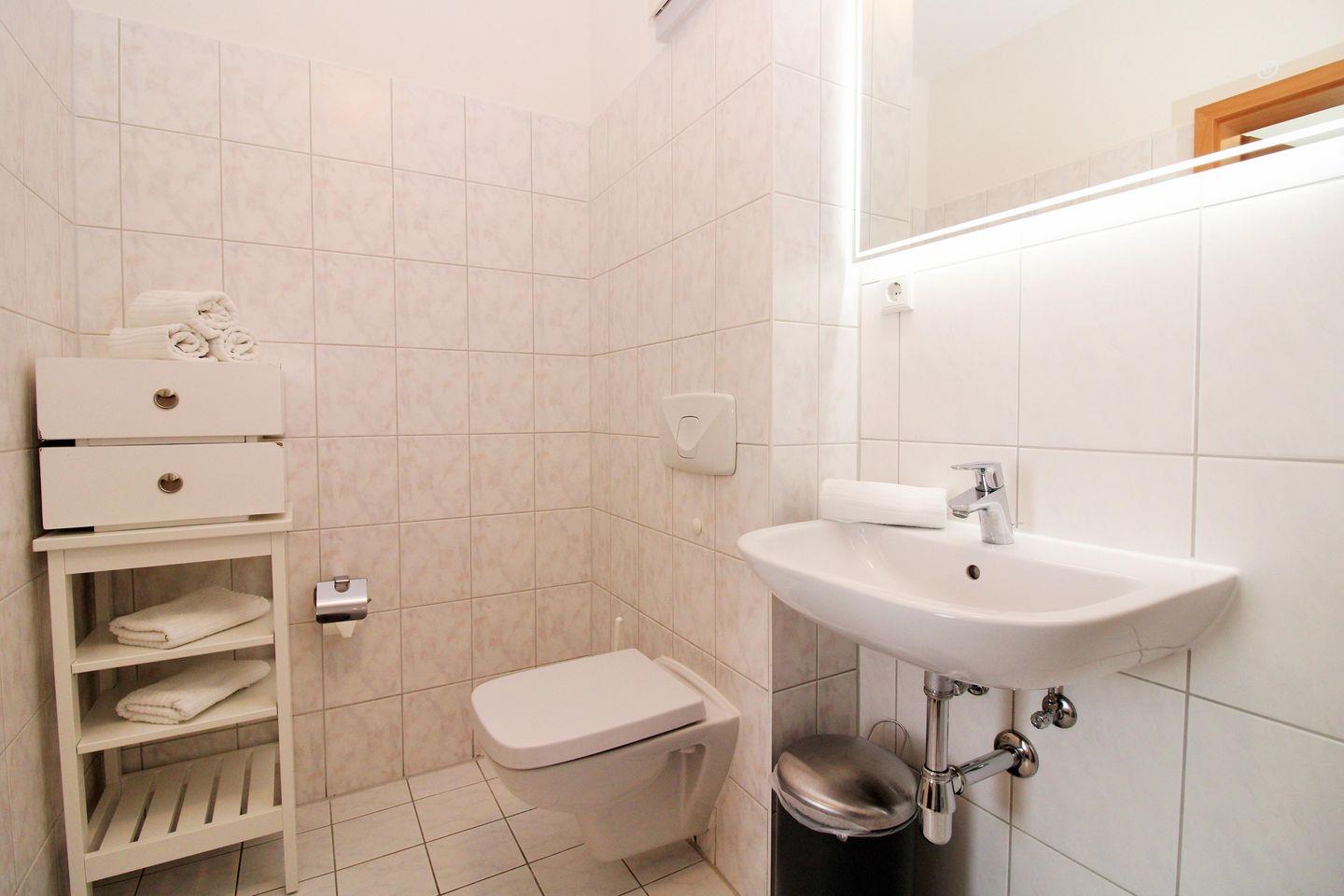 Die Wohnung verfügt über 2 separate Badezimmer: das 1. Badezimmer verfügt über eine moderne Echtglas-Dusche mit flachem Einstieg (seniorenfreundlich!), Waschbecken, WC sowie ein Badezimmer-Schränkchen mit Regal, das zusätzliche 2. Badezimmer mit (Tageslicht / Fenster) verfügt ebenfalls über eine Dusche, Waschbecken, WC sowie einen Handtuchheizkörper.