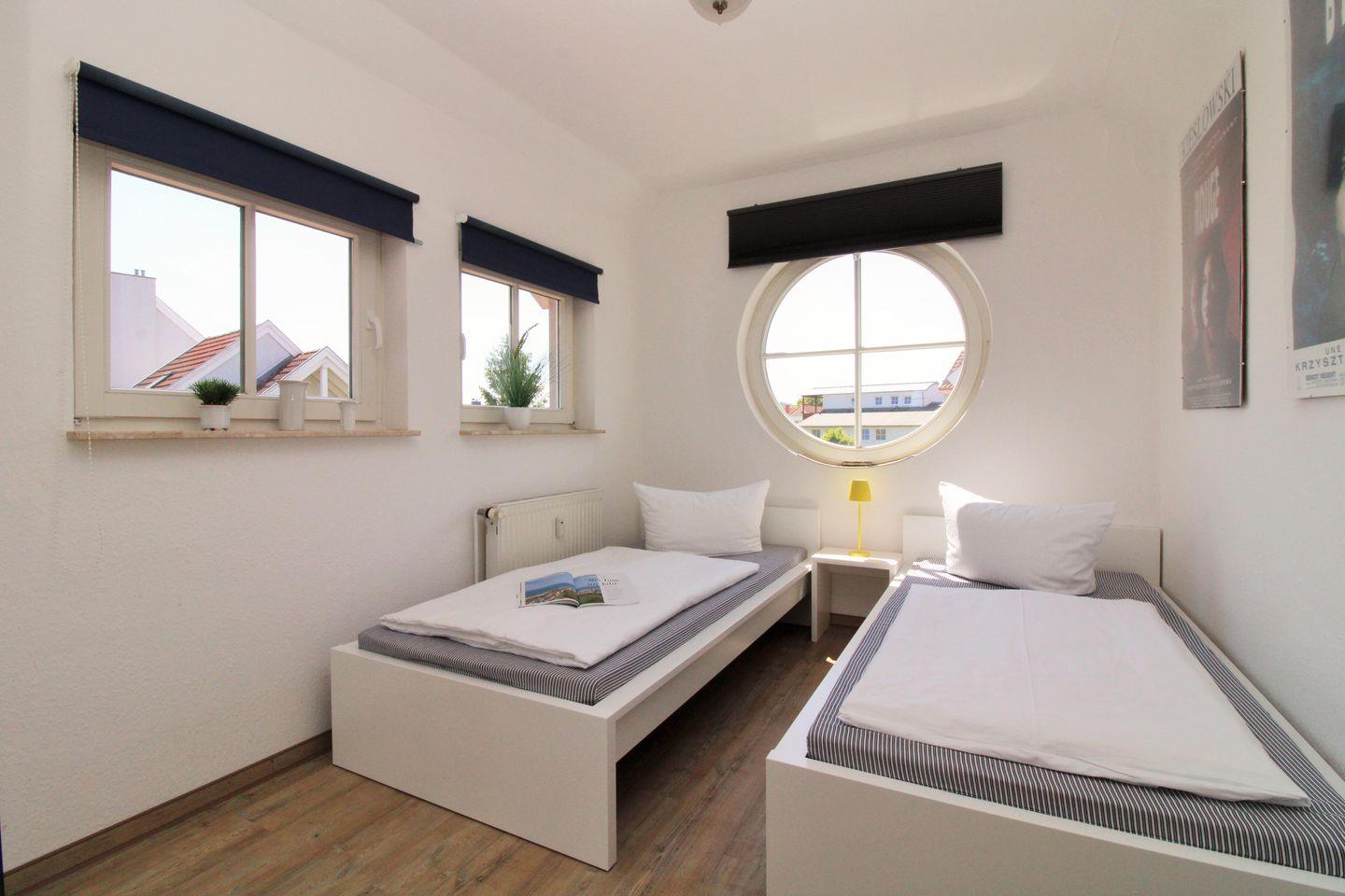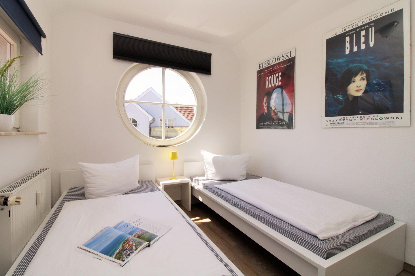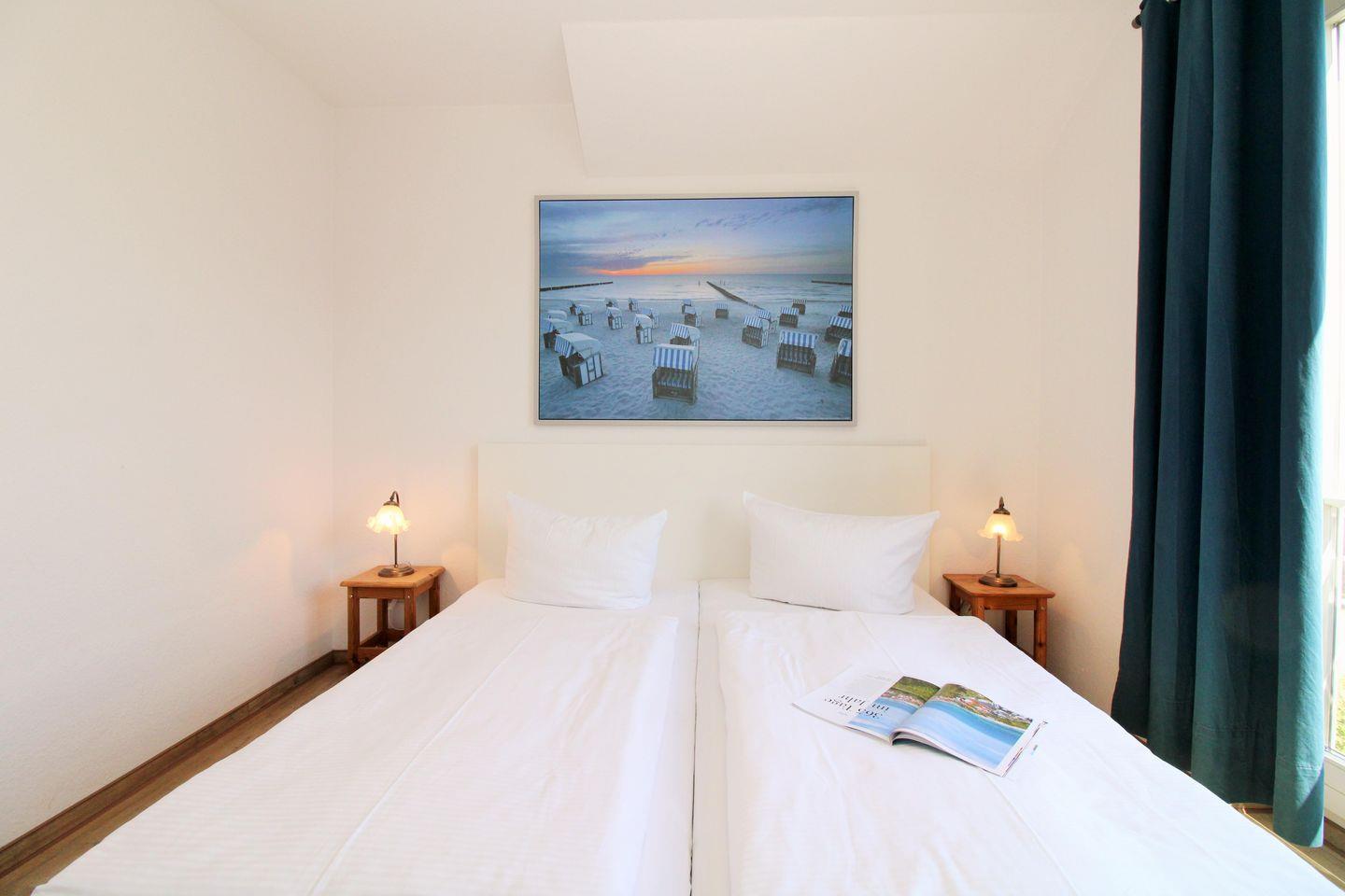 Das separate und zusätzliche 2. Schlafzimmer verfügt über 2 bequeme Einzelbetten, einen Nachttisch sowie einen geräumigen Kleiderschrank.