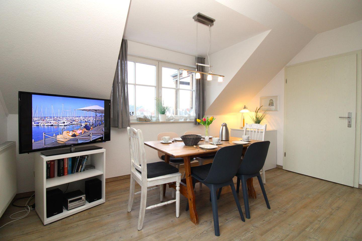 Zu Ihrer Unterhaltung stehen Ihnen in der Ferienwohnung 2 moderne Flatscreen-TV-Geräte, eine Stereo-Anlage mit Bluetooth, DVD-Player sowie eine kleine Auswahl an Büchern und Gesellschaftsspielen zur Verfügung. Darüber hinaus verfügt die Wohnung über kostenfreies WLAN.