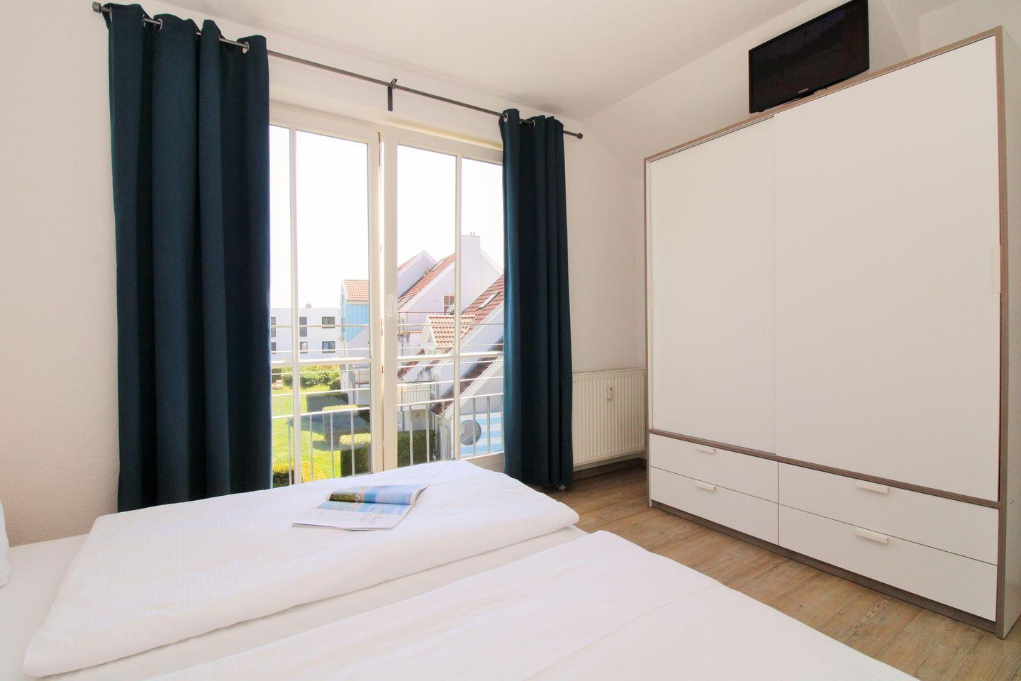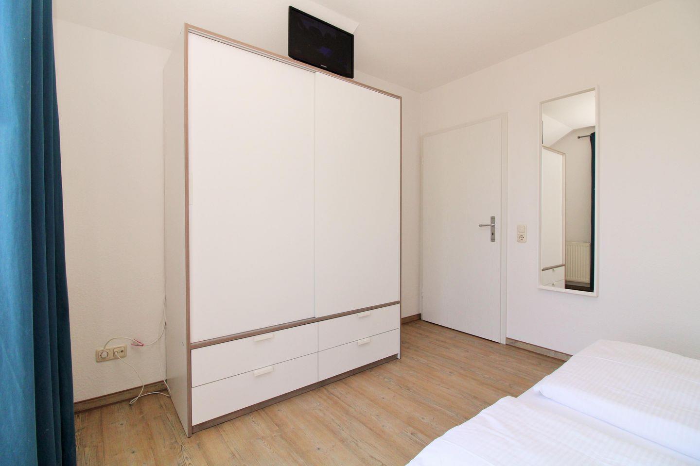 Das geräumige 1. Schlafzimmer ist mit einem bequemen Doppelbett, Nachttischen sowie einem geräumigen Kleiderschrank eingerichtet. Das auf dem SZ-Foto zu sehende TV-Gerät ist aus technischen Gründen leider nicht mehr vorhanden.