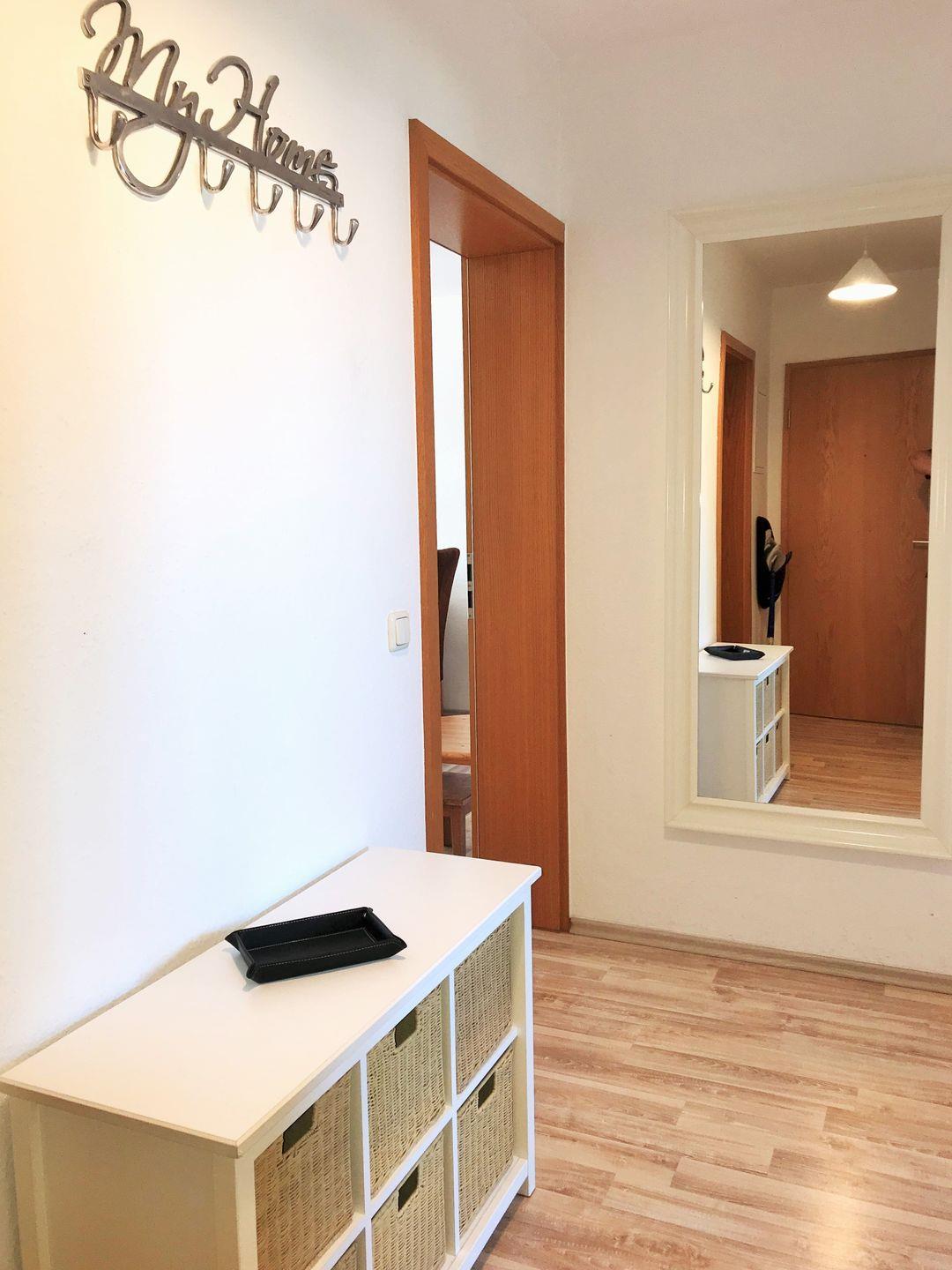 Vom geräumigen Flur mit Kommode, Garderobe und Spiegel erreichen Sie bequem alle Räume Ihrer Ferienwohnung.