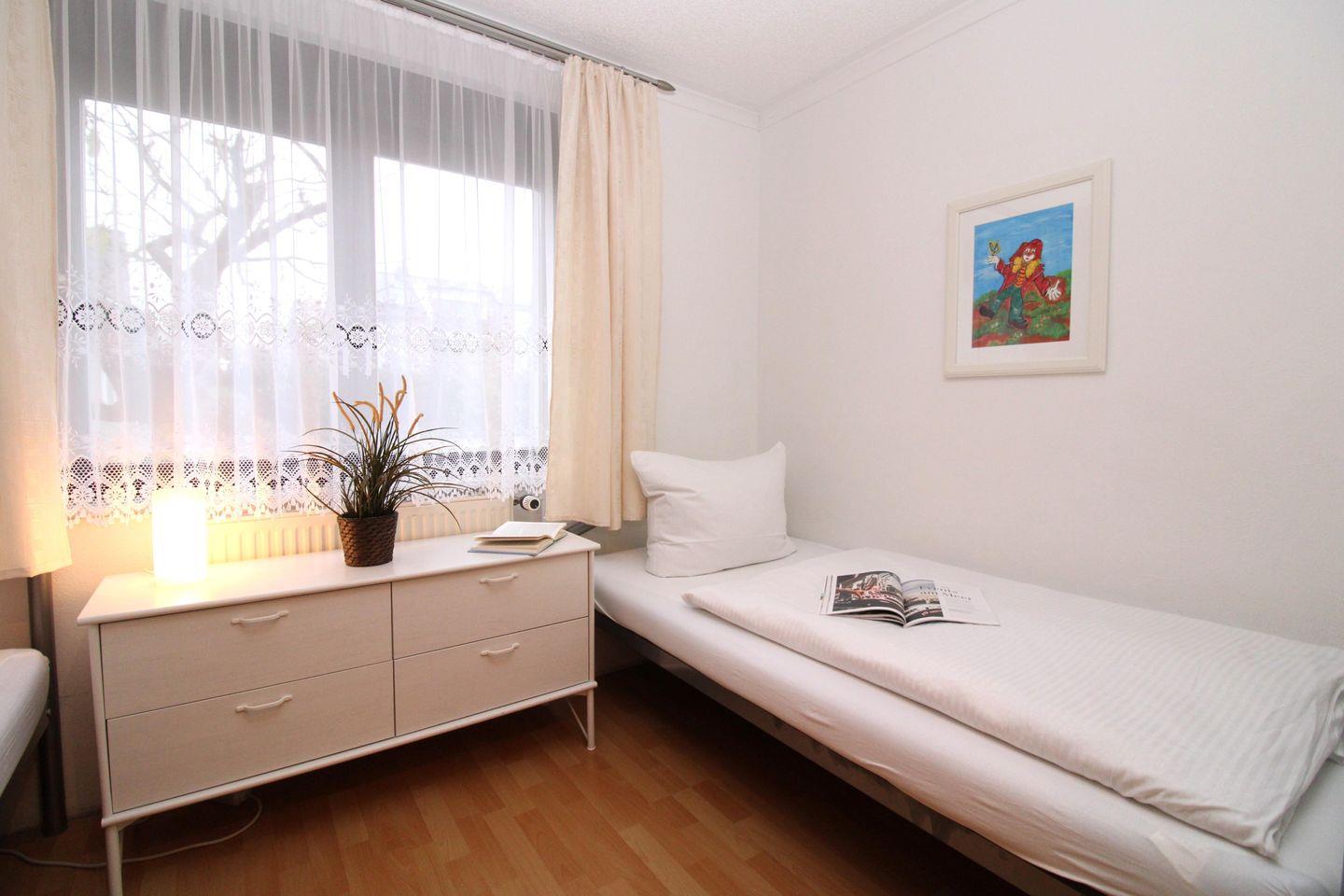 Das separate 2. Schlafzimmer verfügt über zwei bequeme Einzelbetten (90x200) sowie ein Sideboard mit Schubladen.