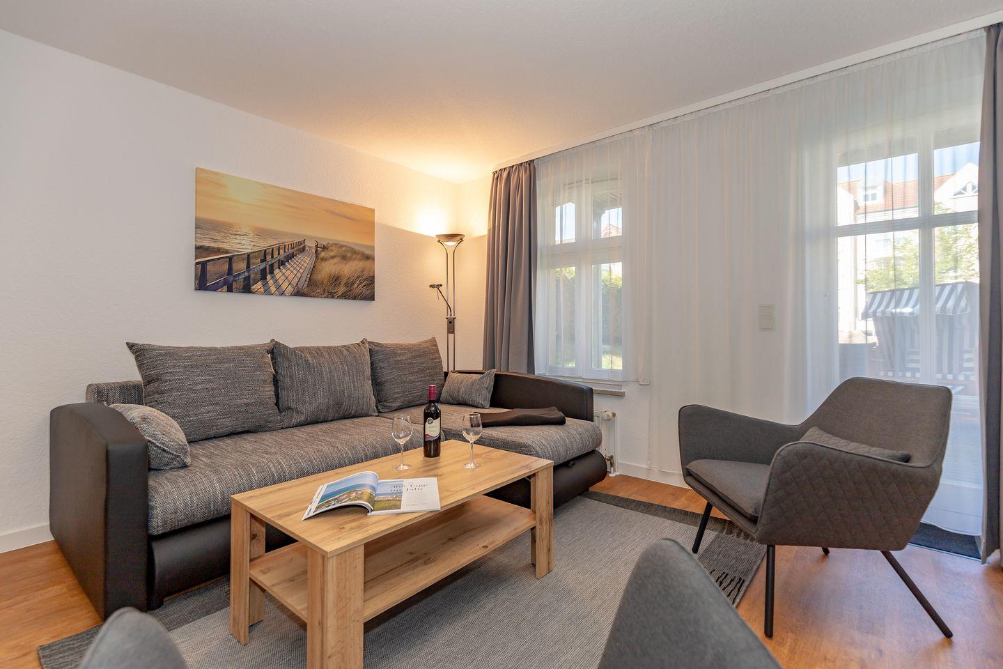 Großzügige, strandnahe 3-Zimmer-Ferienwohnung mit zwei Terrassen und Strandkorb in Kühlungsborn-West.