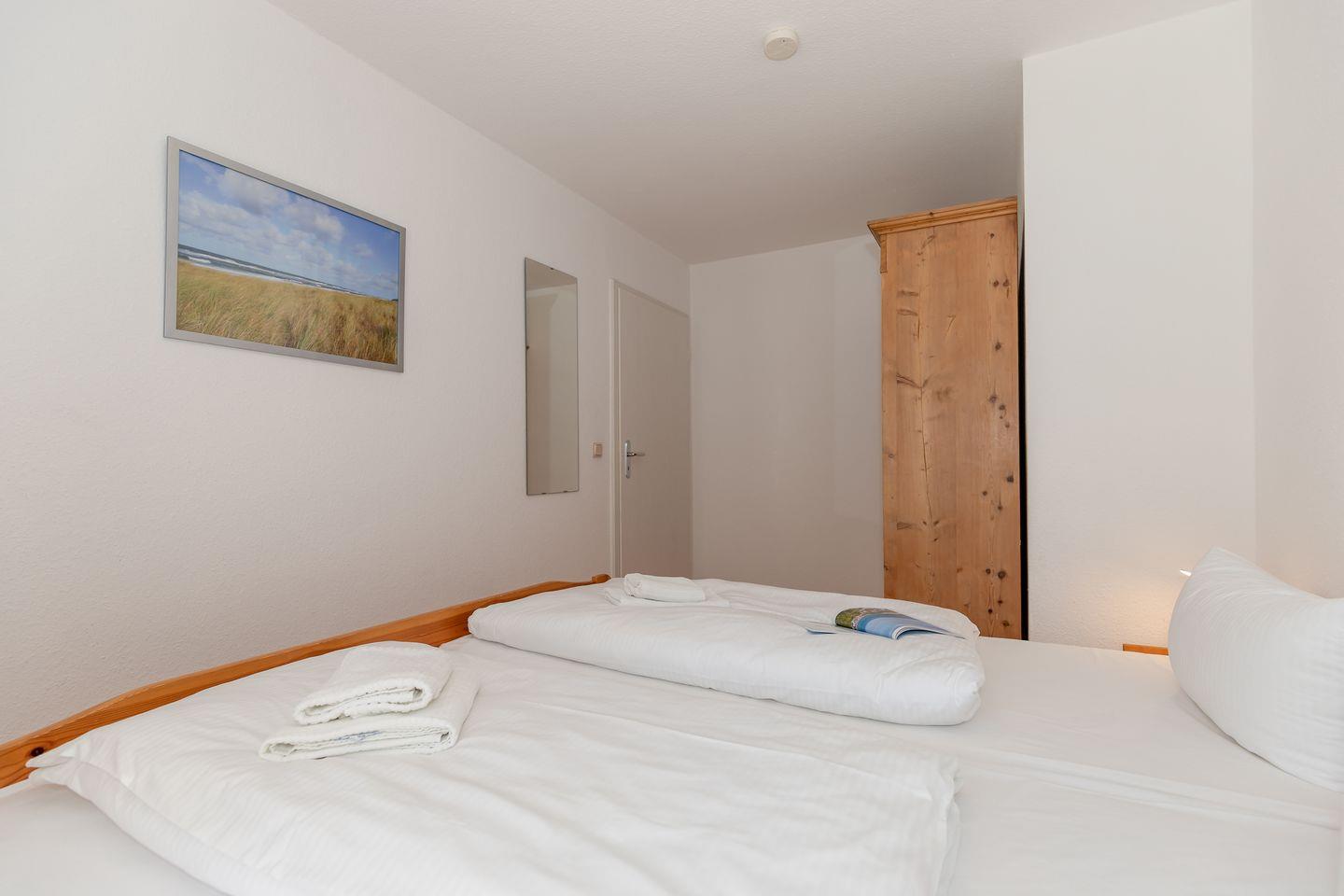 Das separate 2. Schlafzimmer ist ebenfalls mit einem bequemen Doppelbett, Nachttischen und einem Kleiderschrank eingerichtet.
