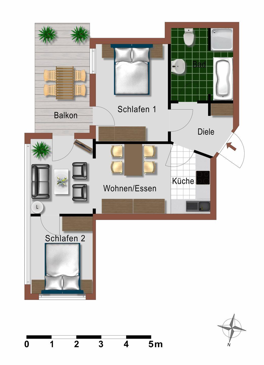 Ruhige 3-Zimmer-Ferienwohnung nahe Strand