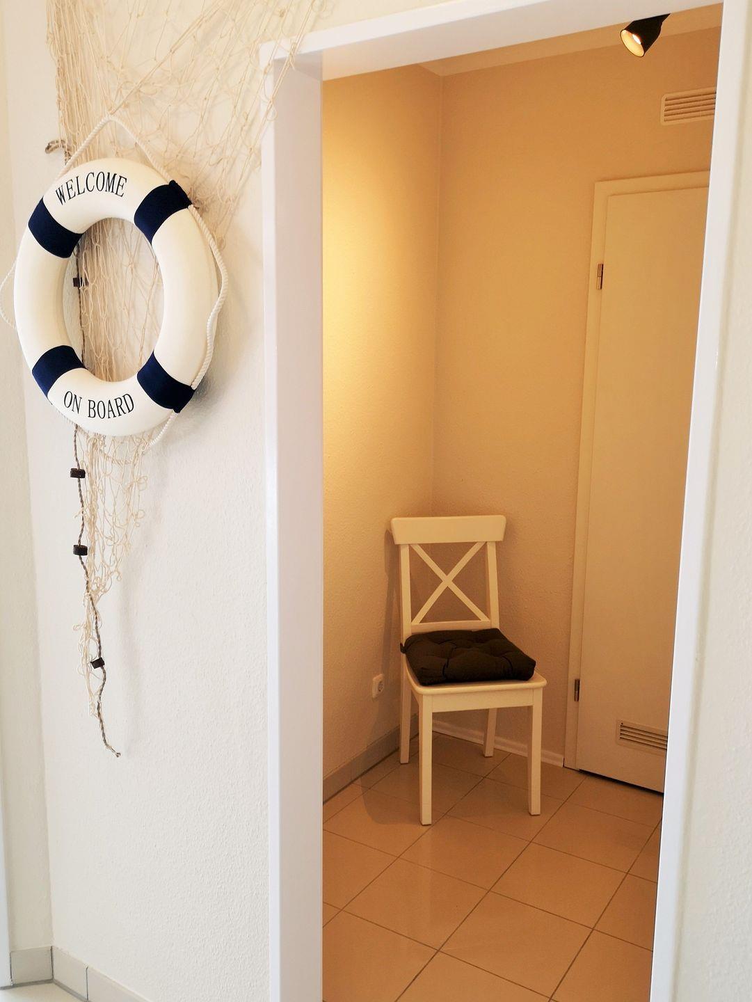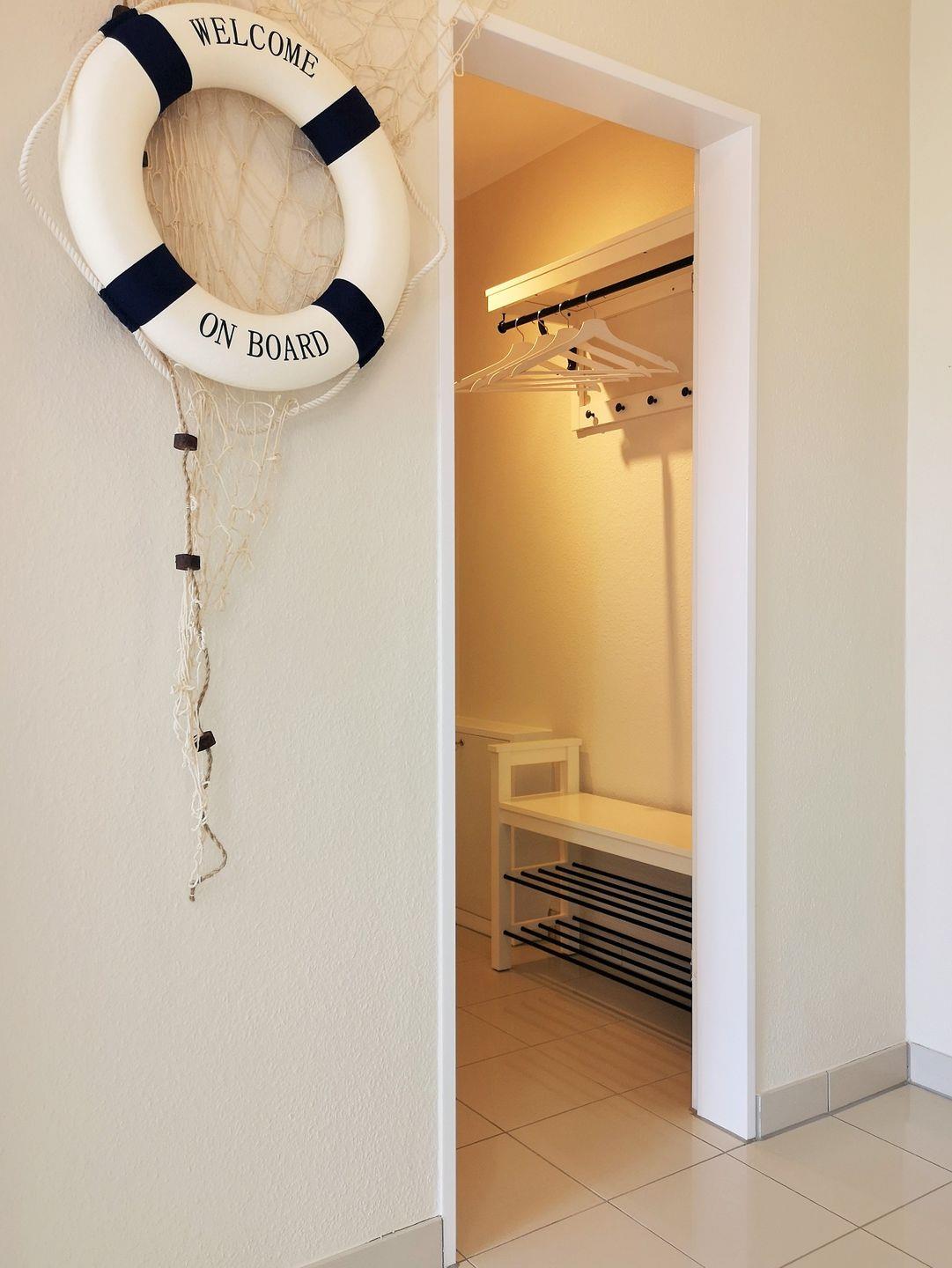 Vom Flur mit Garderobe, Sitzbank und Spiegel erreichen Sie bequem alle Räume Ihrer Ferienwohnung.