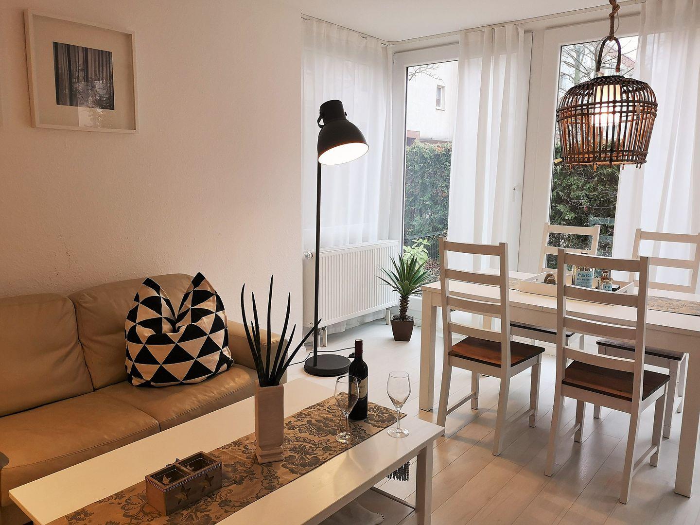 Die moderne und sehr geschmackvoll eingerichtete 3-Zimmer-Wohnung (ca. 64 m²) im Erdgeschoss besitzt ein hohes Maß an Funktionalität und ist komplett eingerichtet.