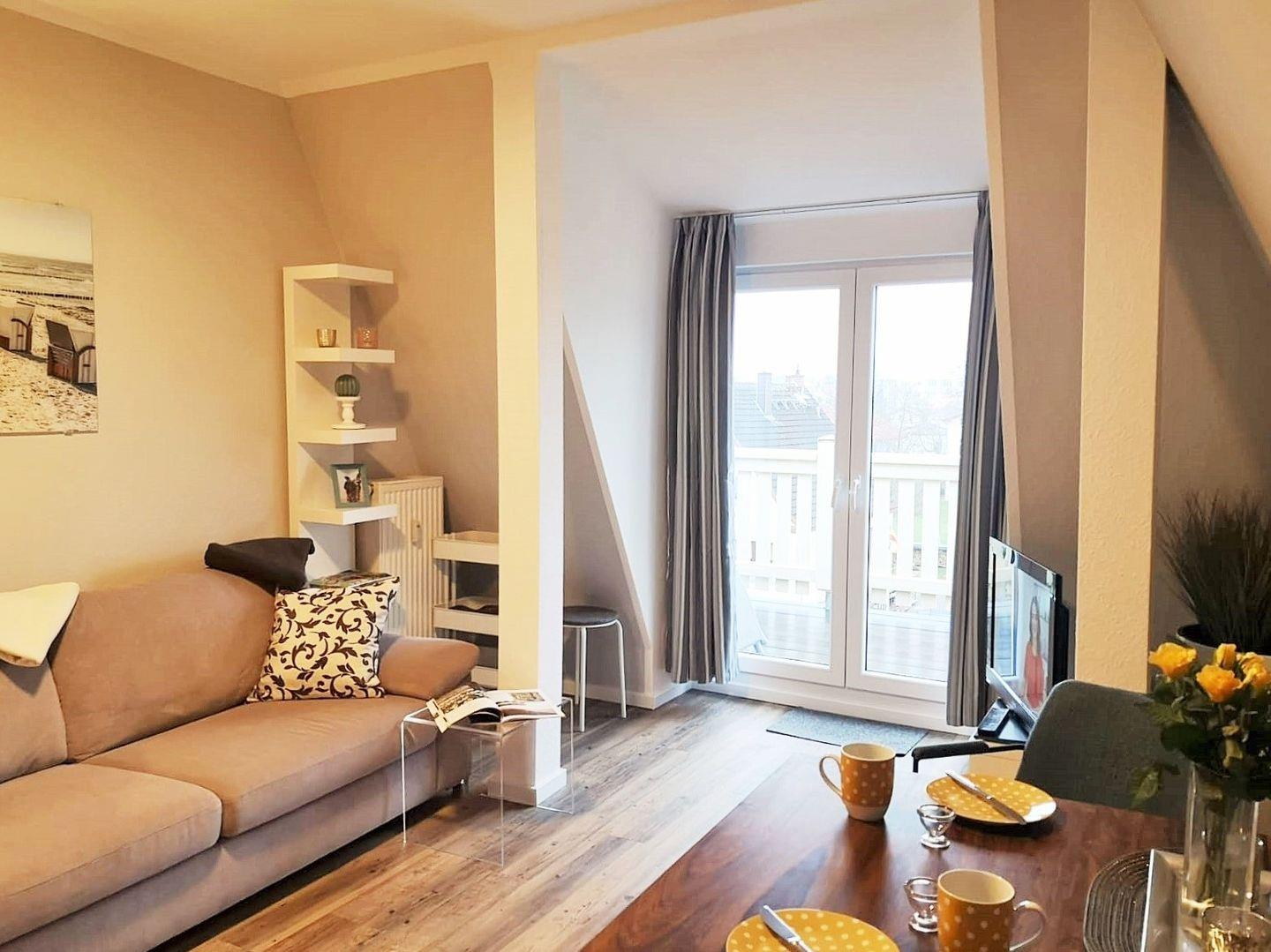 • strandnahe und moderne 2-Zimmer-Fewo mit großem sonnigen Balkon