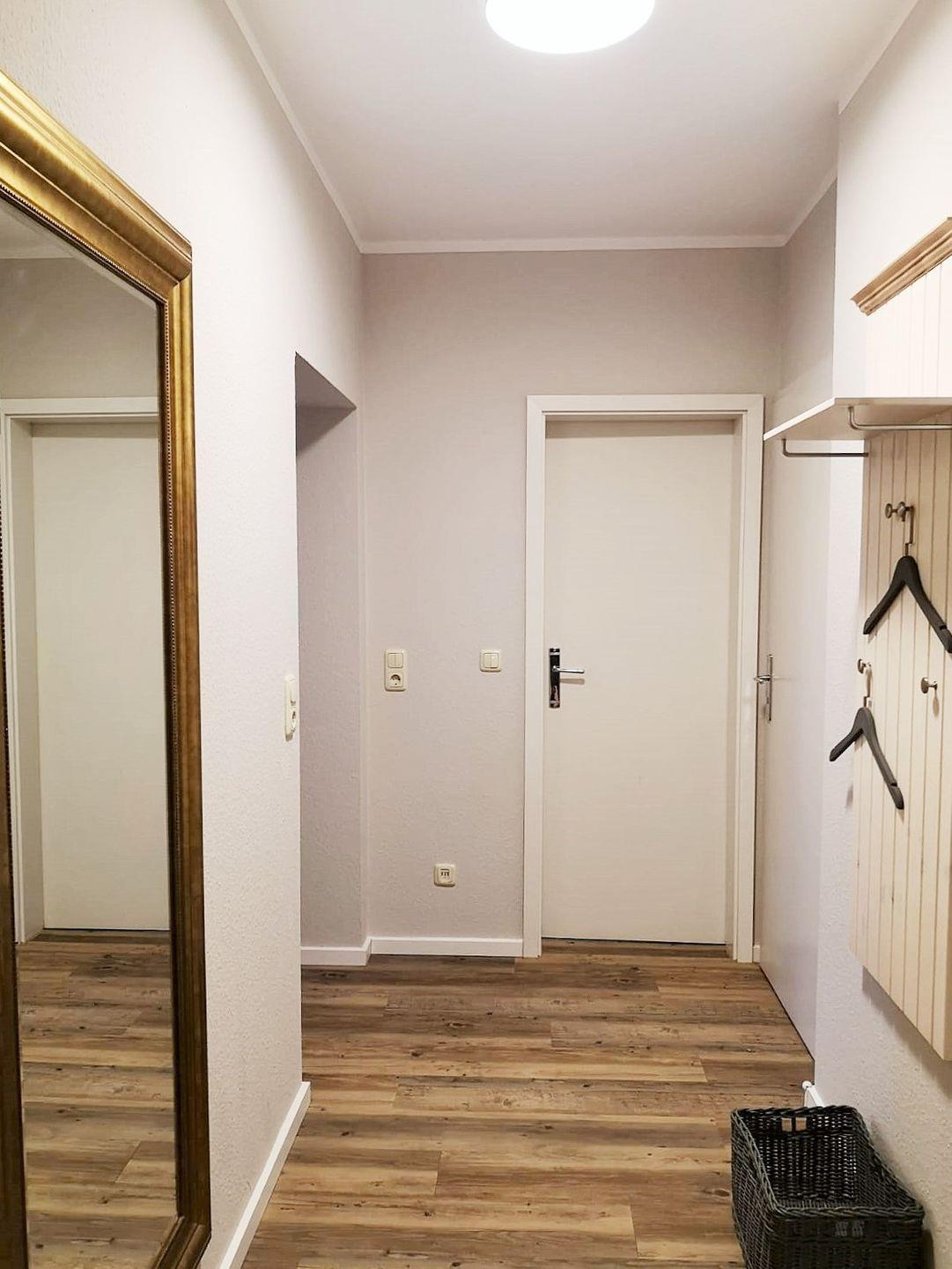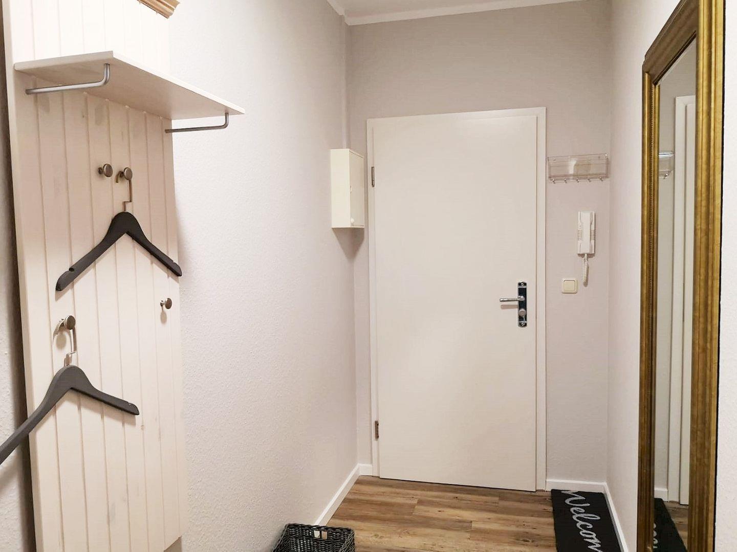 Ihre Jacken können Sie an der Garderobe (mit Spiegel) im Eingangsbereich der Wohnung unterbringen.
