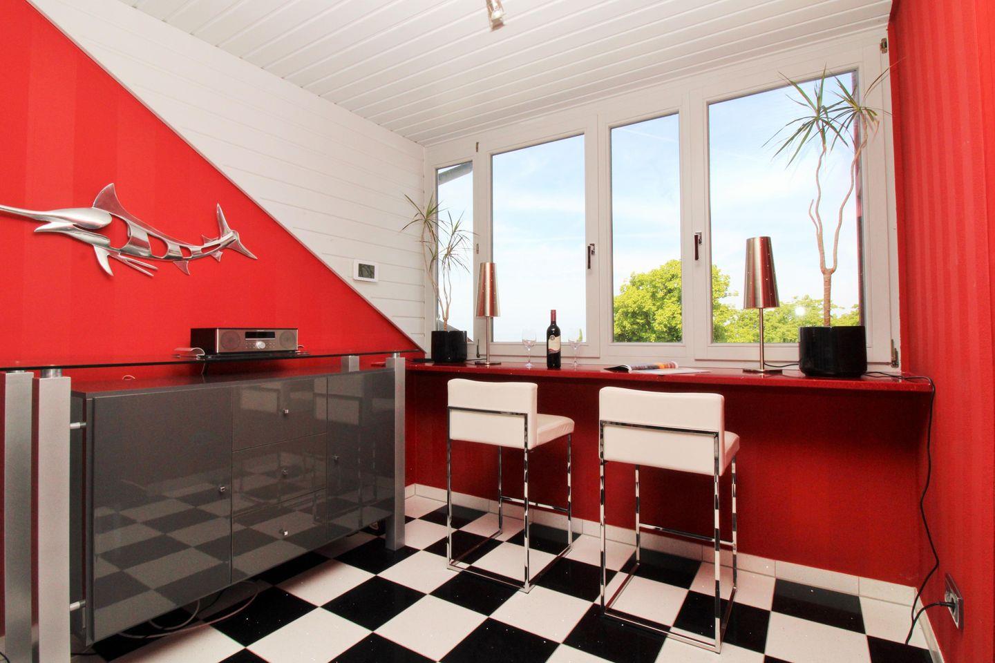 Die in unmittelbarer Strandnähe gelegene, exklusive sowie sehr hochwertig und komfortabel eingerichtete 4-Zimmer-Turmsuite (ca. 100 m²) im 3. und 4. Obergeschoss ist über eine innen liegende Treppe verbunden.