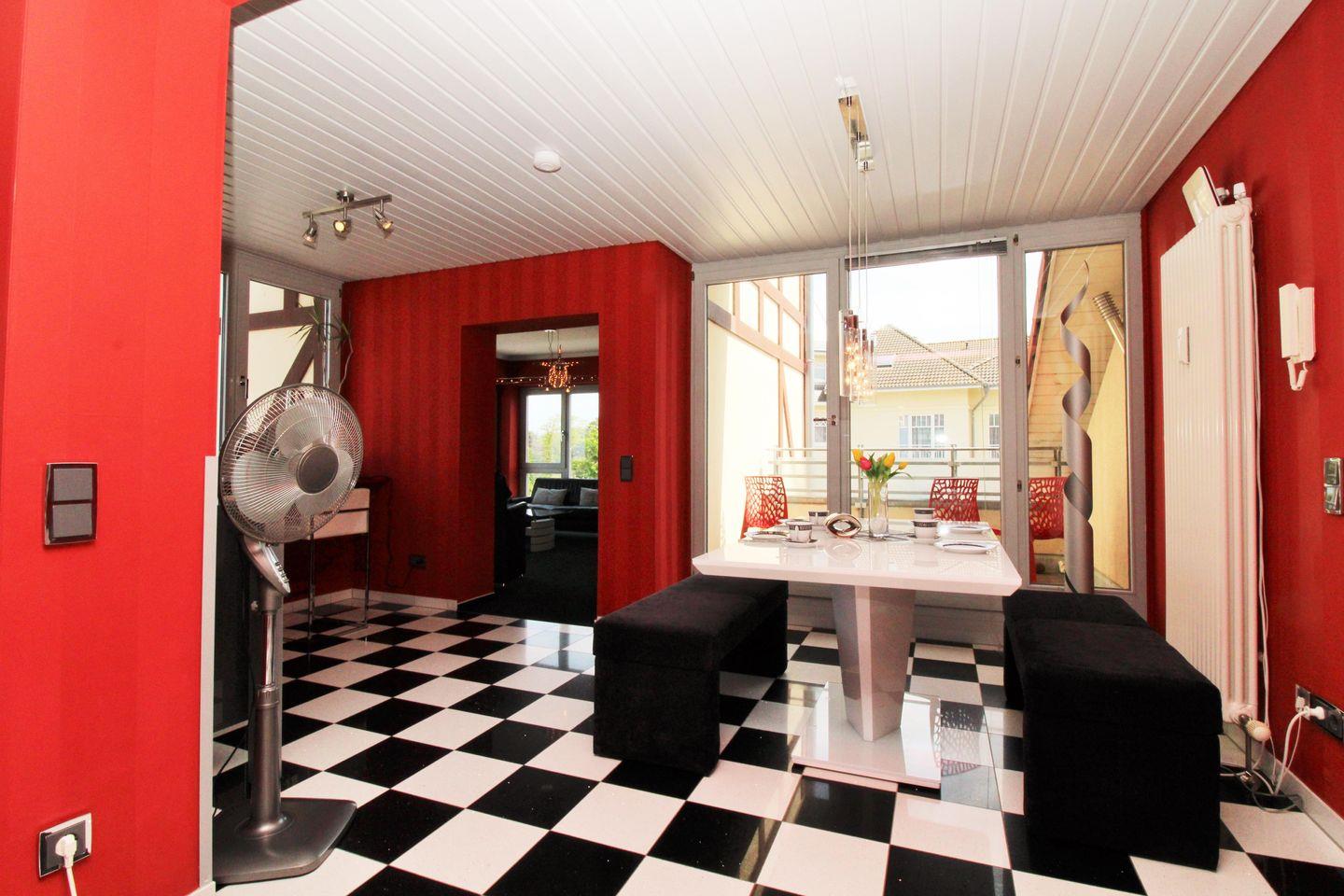Die Wohnung verfügt im Untergeschoss über einen ca. 5 m² großen möblierten Balkon (nach Süd-Osten ausgerichtet), den Sie vom Esszimmer aus erreichen. Im Obergeschoss des Appartements haben Sie weiterhin eine sehr große möblierte Dachterrasse (ca. 20 m²). Hier erwartet Sie ein beeindruckender und fantastischer freier Panoramablick über die Dächer von Kühlungsborn sowie die unendlich scheinende Ostsee. Diese besondere Location bietet sich an, um unvergessliche Sonnenauf- und -untergänge zu erleben, entspannt die Weite des Meers zu genießen, zu träumen oder abends bei einem guten Glas Wein in Ruhe die lauen Sommernächte zu genießen!